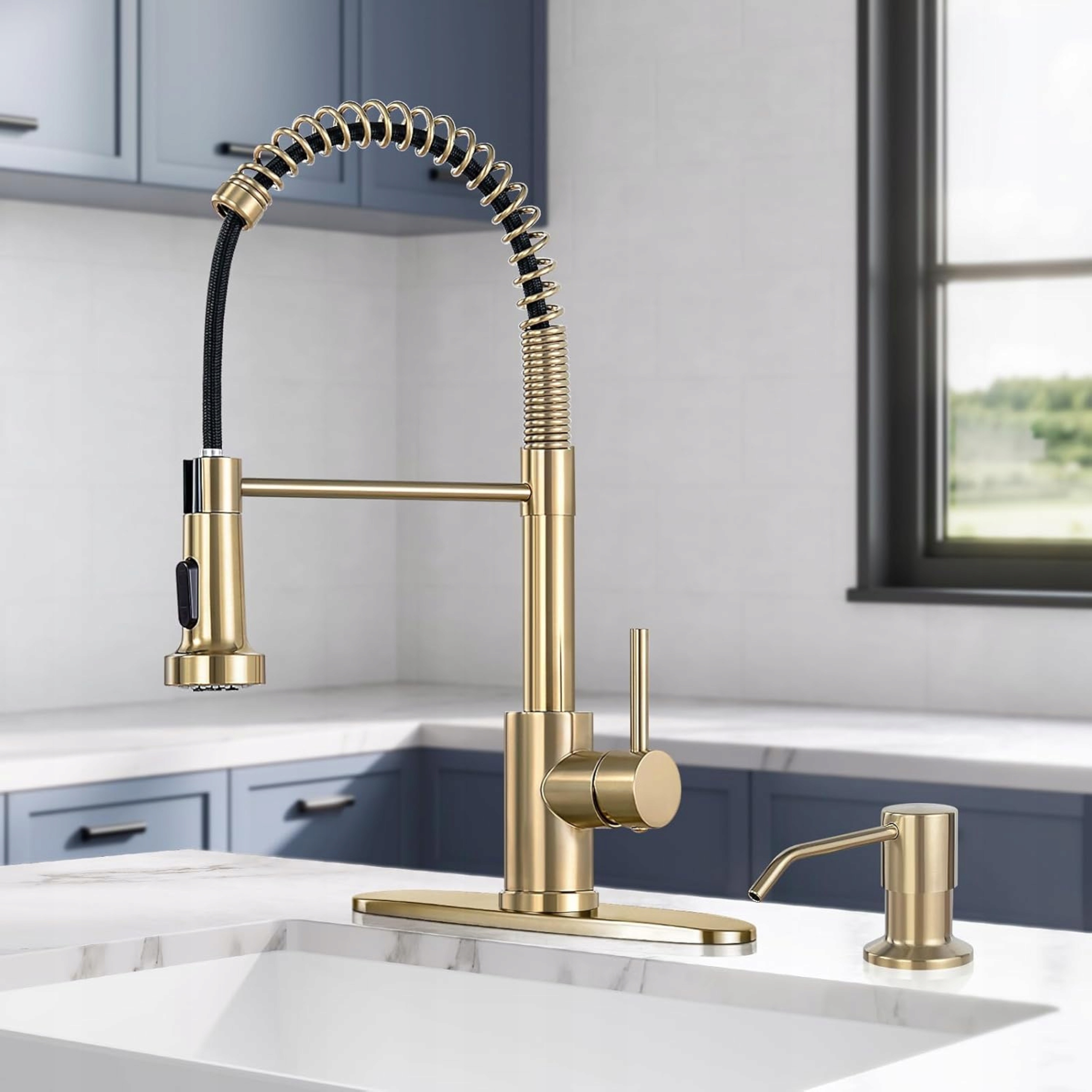 ✅ Luksusowe szczotkowane złoto — Wyjątkowe, satynowe wykończenie w kolorze szczotkowanego złota (Brushed Gold) zamienia zwykły dozownik w designerski element Twojej kuchni. To nie tylko praktyczny dodatek, ale również ozdoba, która natychmiast podnosi prestiż całego wnętrza.