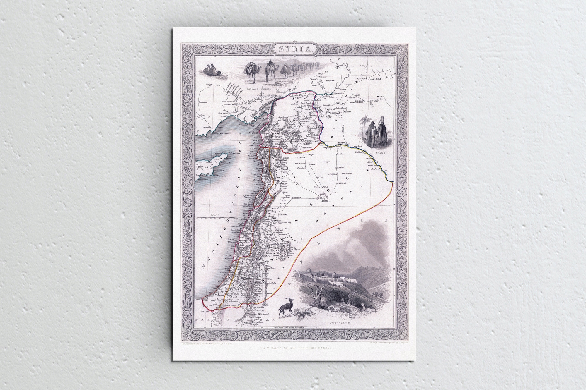 Reprodukcja mapy Syrii z roku ok 1850, autorstwa Johna Rapkina.