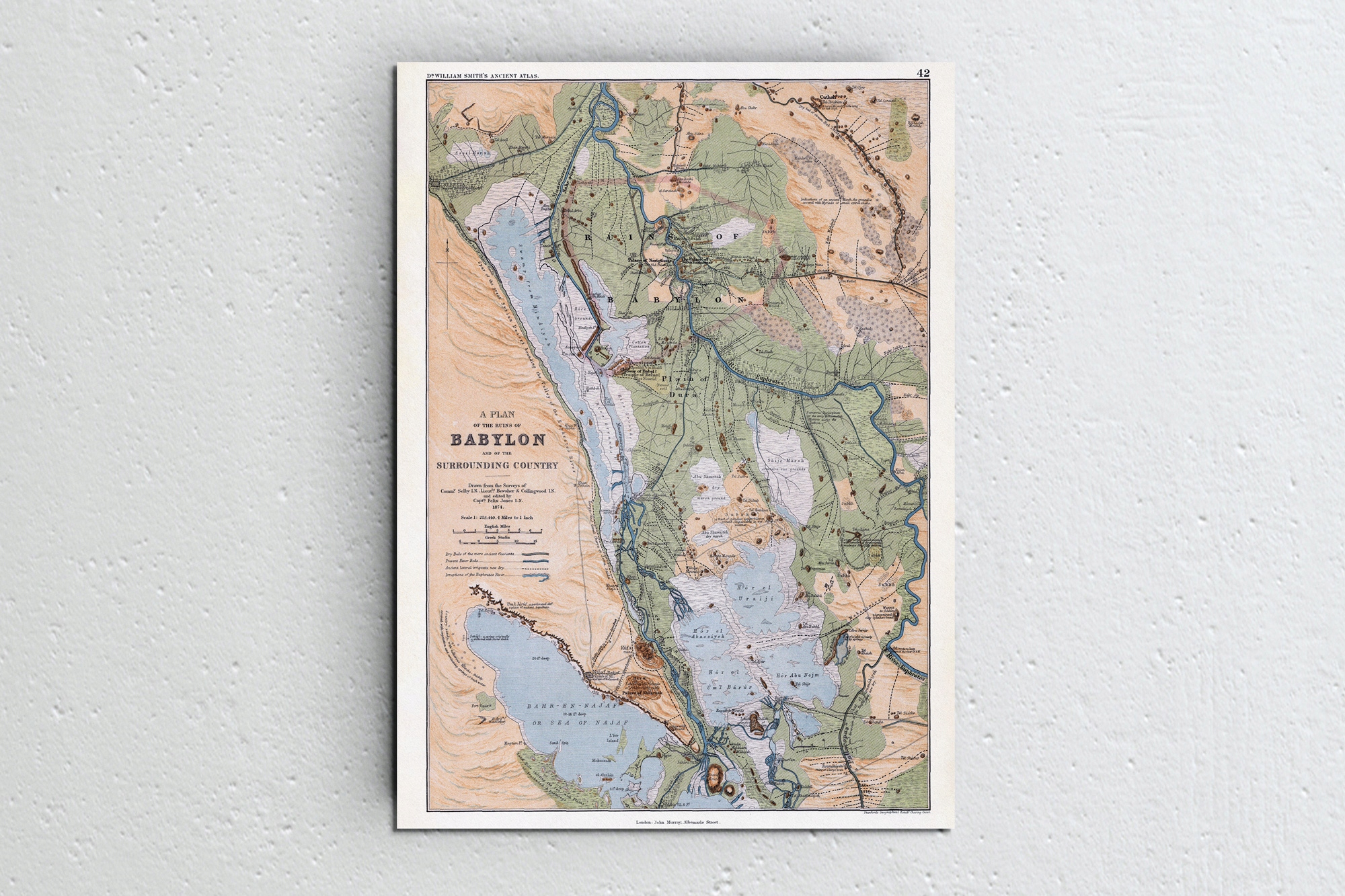 Reprodukcja planu Babylonu oraz okolic z roku 1847, autorstwa Williama Smitha.