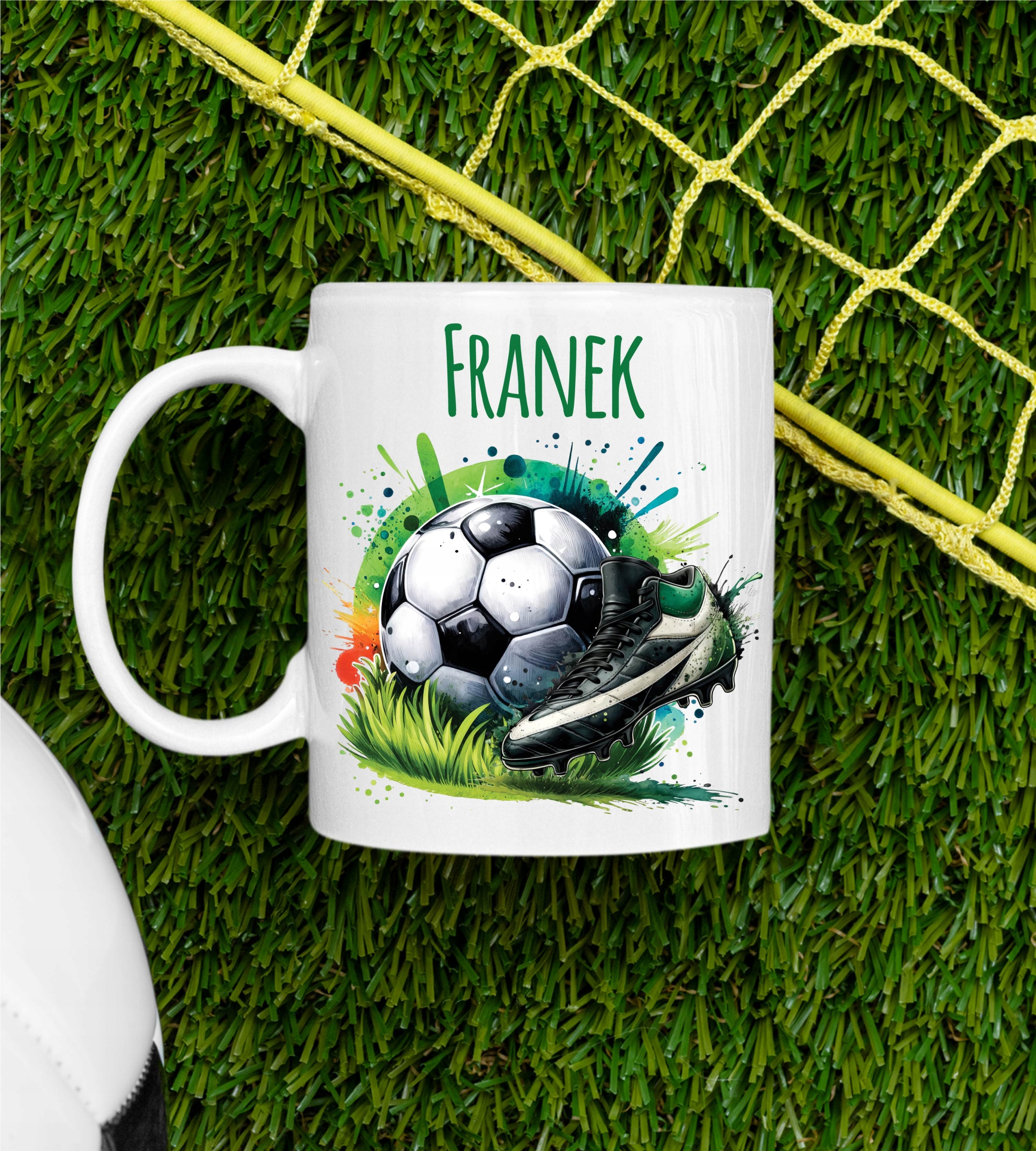 Тематика, тема Подушка для чашки, подарок для футболиста, футбольного болельщика, футбольные футбольные бутсы, любое имя, чашка на подарок