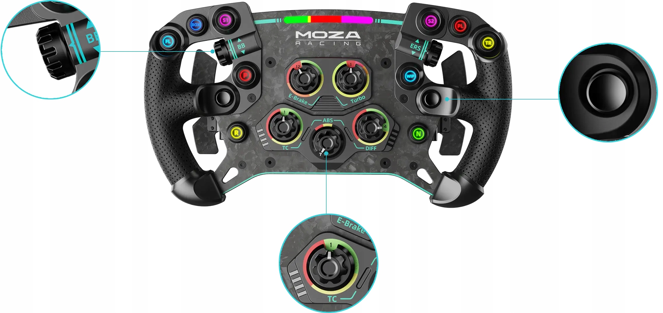 Dzięki dostępowi do pokręteł i przełączników umieszczonych przy kciukach, regulacje samochodu "na żywo" są szybsze niż kiedykolwiek wcześniej. Dokonuj szybkich zmian w proporcjach hamulców, kontroli trakcji, mapie silnika, ABS i wielu innych parametrach. Dwa dżojstiki umożliwiają pełną nawigację po menu, co oznacza, że możesz trzymać ręce na kierownicy i nie przegapić żadnego momentu.