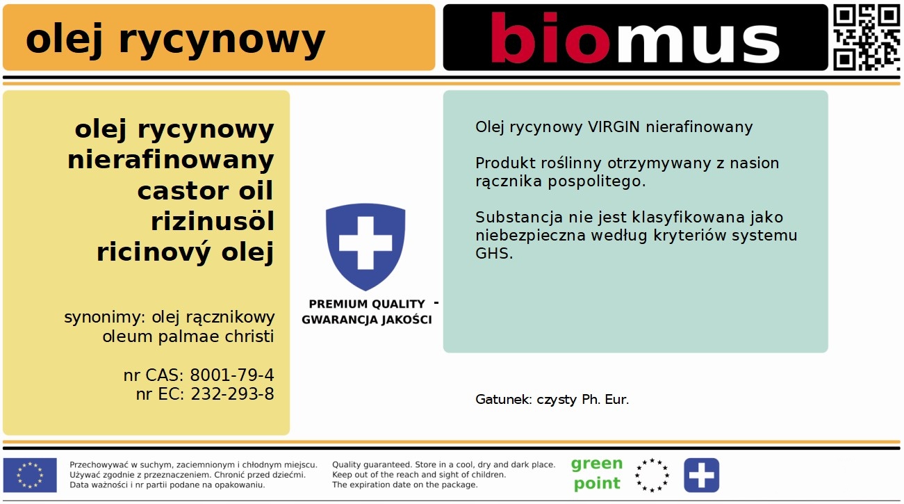 Olej rycynowy NIERAFINOWANY VIRGIN - został pozyskany na zimno, z pierwszego tłoczenia. Jest to olej najwyższej jakości, zgodny z monografią Farmakopei Europejskiej
