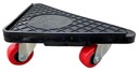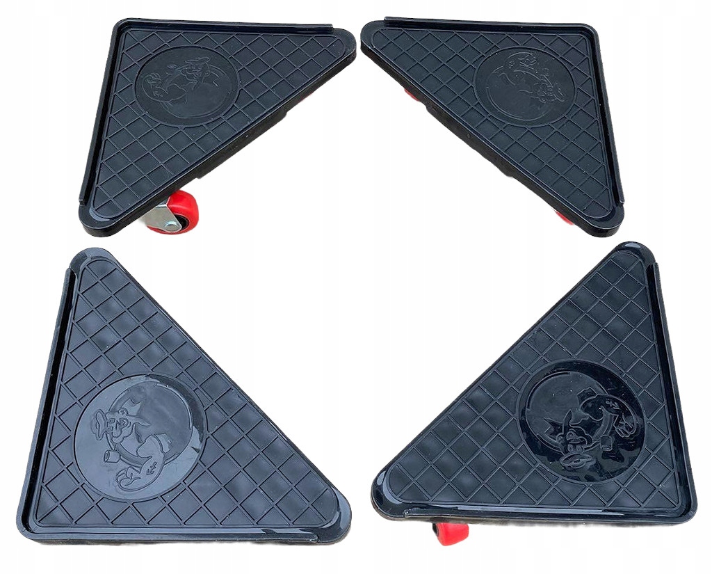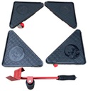 Unieść krawędź, narożnik mebla za pomocą dźwigni , wsunąć płytkę z rolką i opuścić ładunek. Podobnie postąpić z pozostałymi rolkami.