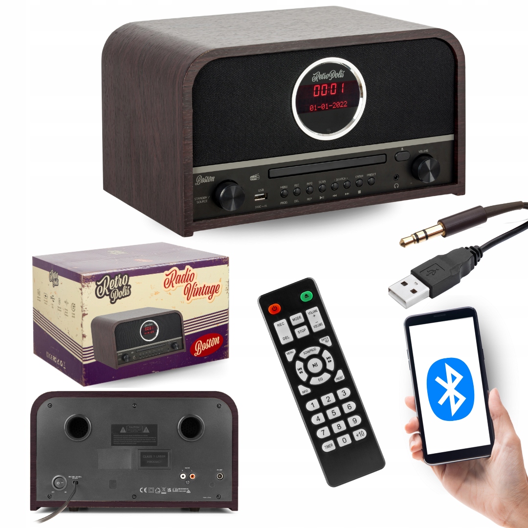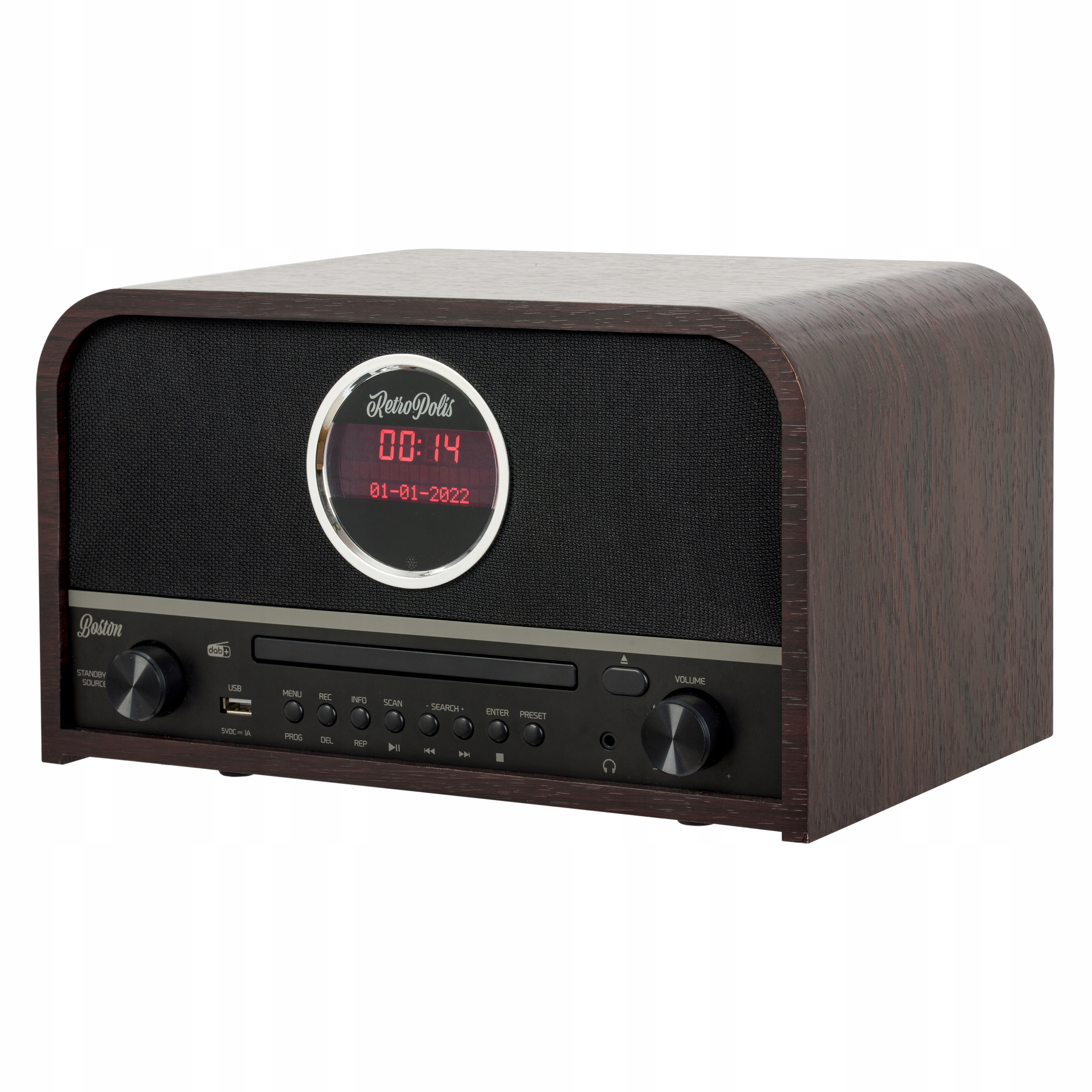Retropolis to marka, która przenosi Cię w czasie, do lat dzieciństwa Twego, Twoich rodziców i dziadków. Jednocześnie radia tej marki nawiązują do najlepszych tradycji światowej muzyki, czerpiąc garściami ze stylów, które zachwycały i dotąd zachwycają miliony. Model Boston to hołd dla miasta z którego pochodzi zespół o mocnym i wyrazistym brzeminiu Aerosmith. Produkt, który stanie się ozdobą Twojego wnętrza niezależnie od tego, w jakim stylu je zaprojektowałeś. Jednocześnie, mimo iż designem czerpie ze stylu vintage, jest naładowane nowinkami technicznymi, które ułatwią Ci korzystanie z radia niezależnie od warunków. Bluetooth, odtwarzanie szerokiego pasma FM/AM, muzyka z telefonu za pomocą komunikacj Bluetooth czy pendrive'a. To wszystko jest możliwe dzięki naszemu Boston. Dodatkowo wbudowany jest odtwarzacz płyt CD.