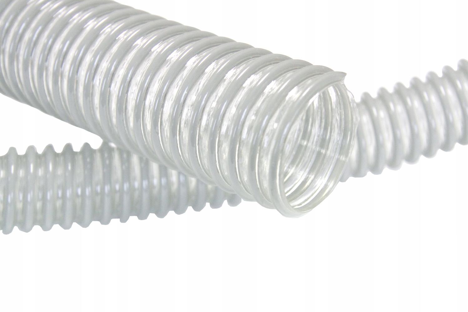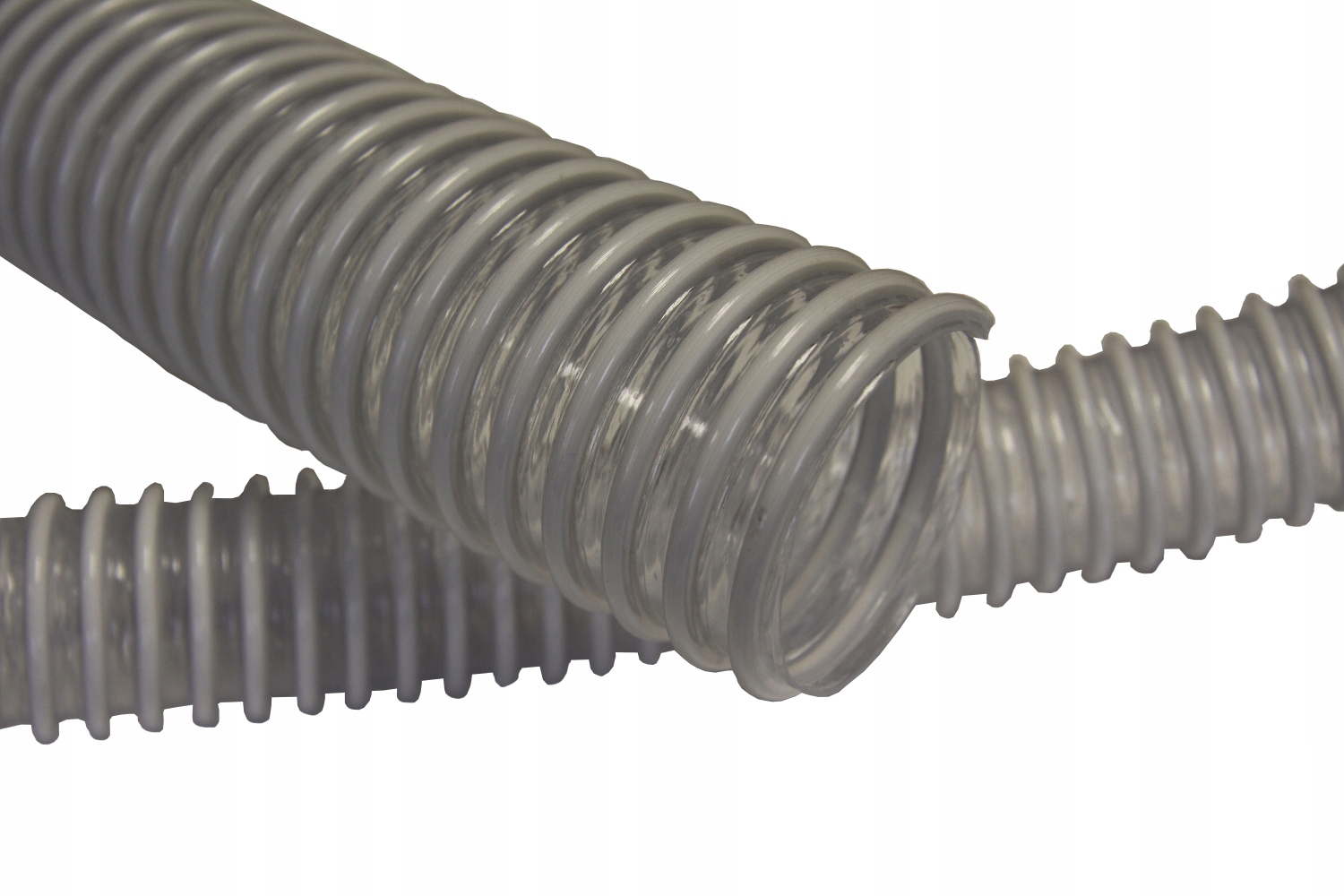 Wąż pvc polichlorek winylu wzmocniony odporną na uderzenia spiralą z PVC, do palników na pellet, odsysania i przesyłu pyłów, trocin, wiórów i materiałów o właściwościach ściernych.