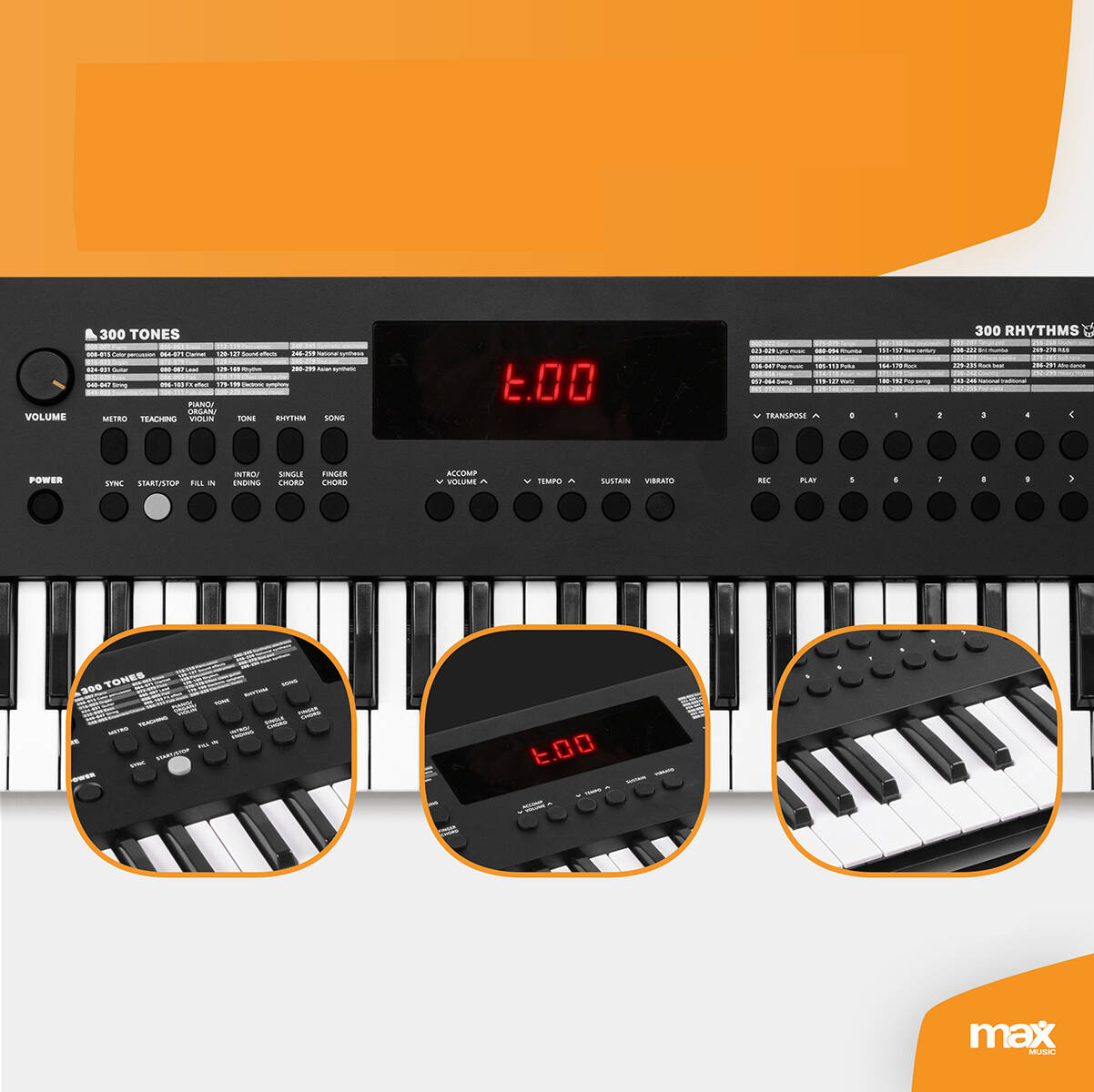 Odkryj Rhapsody49 – nowoczesny keyboard cyfrowy, który oferuje aż 300 różnych dźwięków (m.in. trąbka, organy, gitara) oraz 300 rytmów (disco, walc i inne). Idealny zarówno dla dzieci, jak i dorosłych – do nauki, zabawy i rozwijania muzycznych pasji.