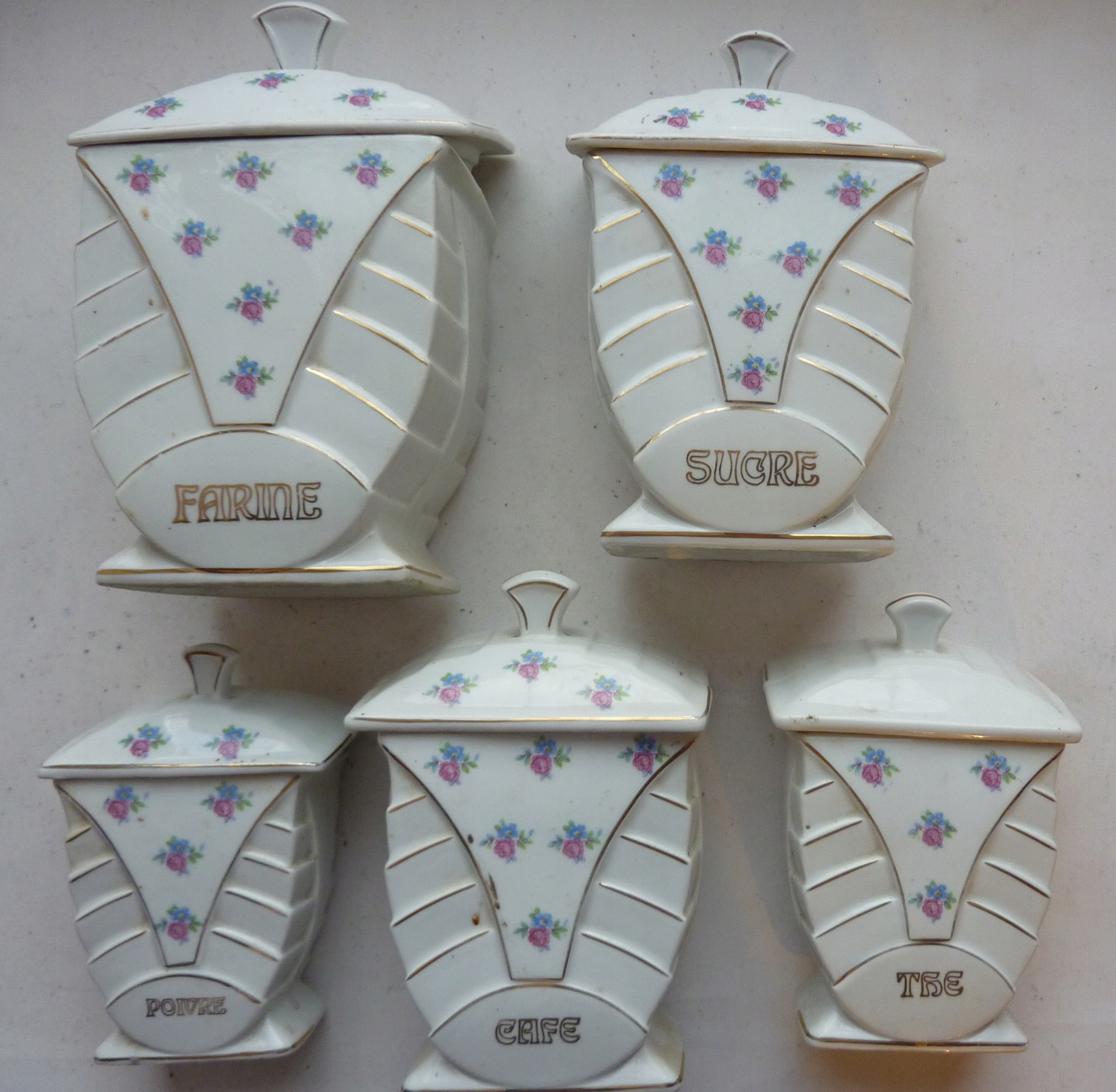 KOMPLET FRANCUSKICH POJEMNIKÓW NA PRZYPRAWY 1930 ART DECO