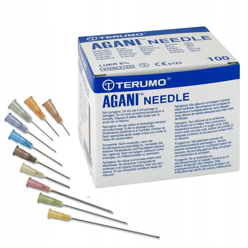Igły Terumo Agani są pakowane indywidualnie w sterylne blistry. Każda igła pokryta jest cienką warstwą silikonu.