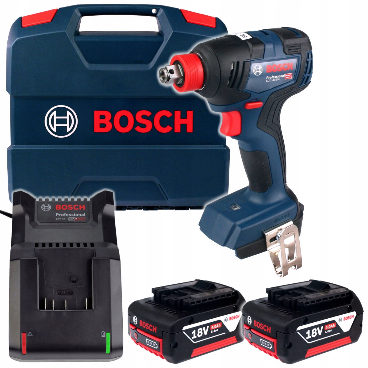 Zakrętarka udarowa GDX 18V-200 została wyposażona w 2 akumulatory litowo-jonowe 18V o bardzo dużej pojemności – 4,0Ah.