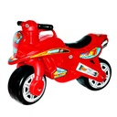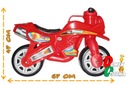 Mały kierowca wsiadając na swój motor będzie się czuł jak prawdziwy motocyklista. Duże i solidnie wykonane koła powodują, że motorek jest bardzo stabilny - postawiony nie przewraca się. Bez problemu dziecko będzie poruszać się nim w domu i na podwórku. Szerokie koła pozwolą na jazdę po chodniku, trawniku, a nawet po piasku. Wygodne siedzisko zapewni swobodę poruszania się i bezproblemowe wsiadanie i zsiadanie z motoru. Widelec przedni jest skrętny! Ergonomiczny kształt manetek daje pewność prowadzenia motocykla.
