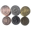 W tej kategorii znajdziesz monety metalowe związane z konkretnymi motywami lub tytułami gier. Zestawy zawierają produkty imitujące złoto (pokryte warstwą mosiądzu), srebro (warstwą niklu) lub miedź (warstwą miedzi). Ich wzory nawiązują do gier postapo, fantasy, steampunkowych, utrzymanych w klimacie średniowiecza, starożytności, kosmosu, oraz powieści Lovecrafta.