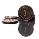 Metalowe monety są dość ciężkie. Pojedyncza waży tyle co 3 lub 4 pięciozłotówki, ma również o ok. 5 mm większą średnicę. Waga żetonów jest dodatkowym czynnikiem budującym realizm w trakcie gry.
