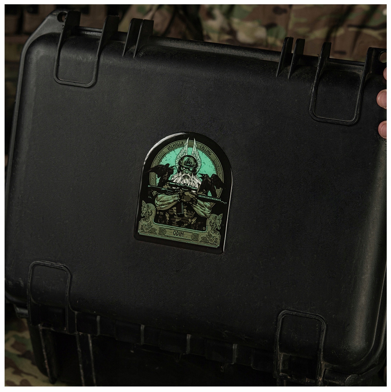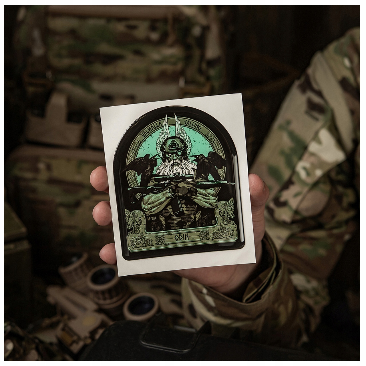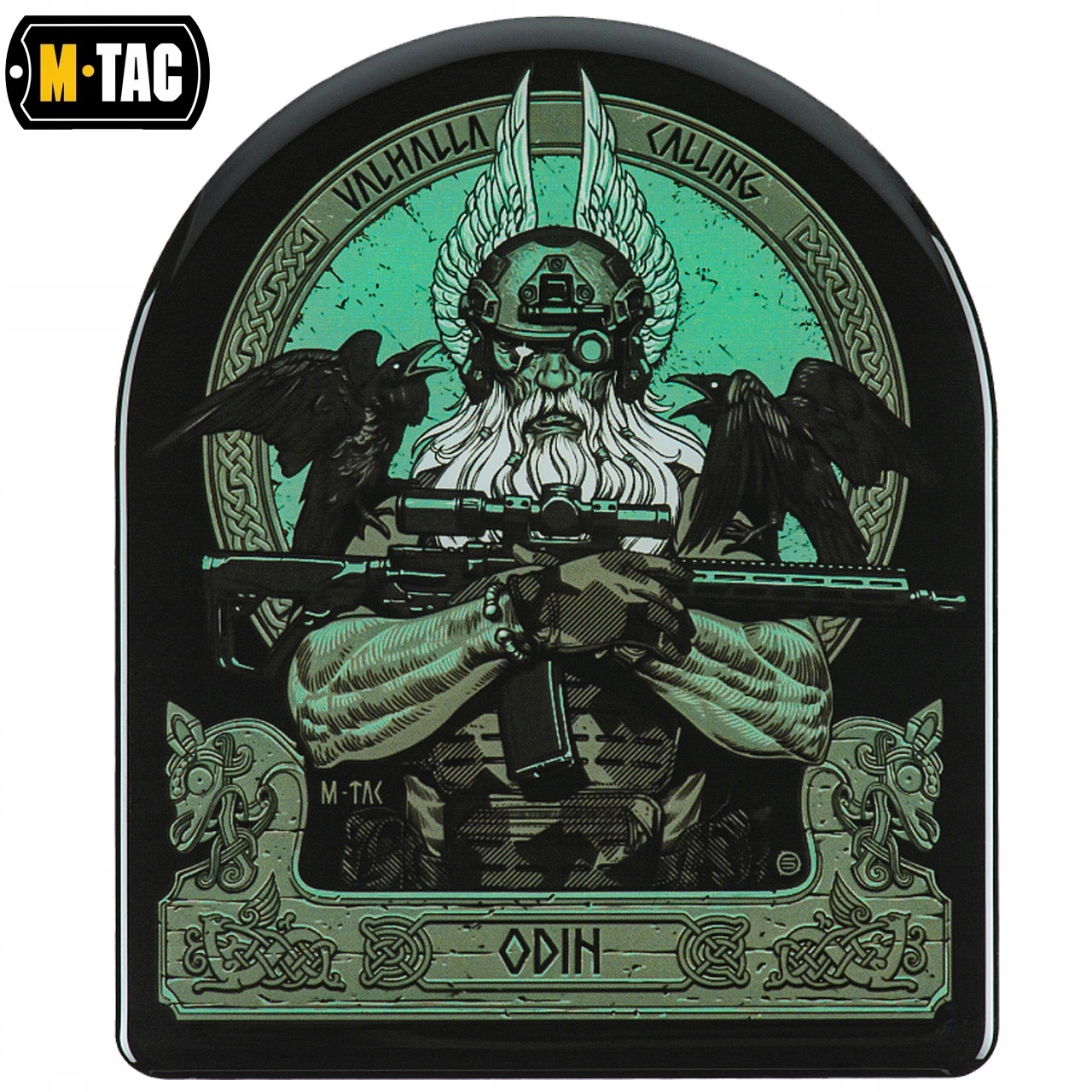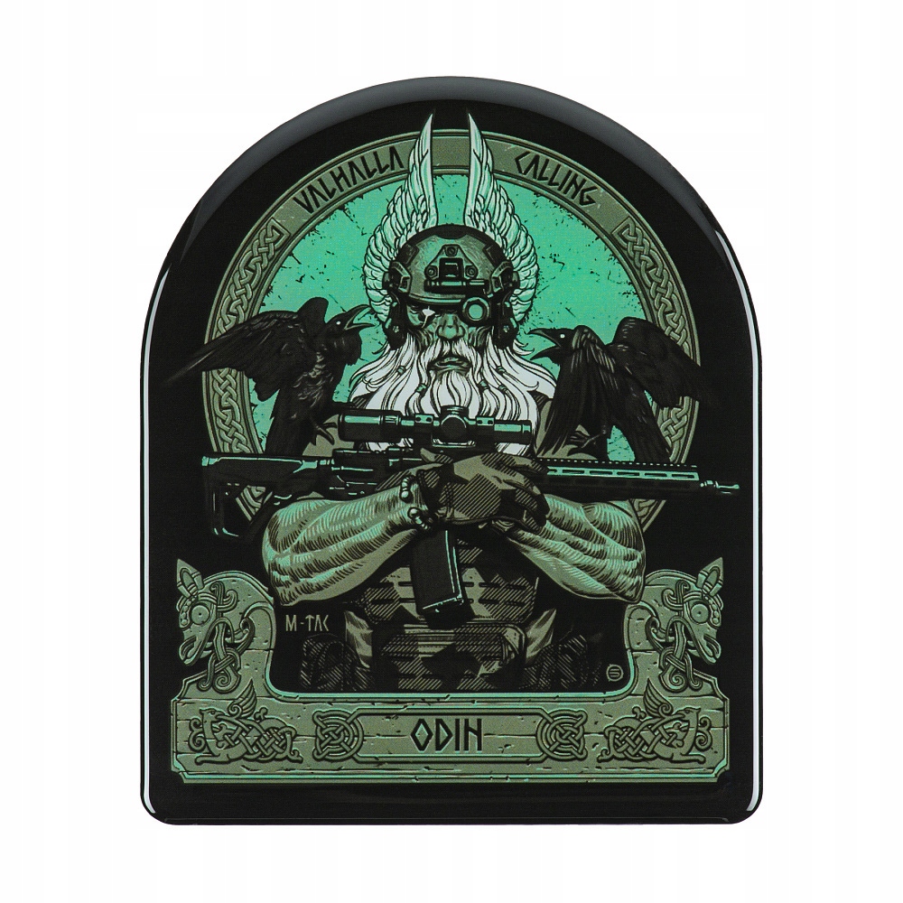 Naklejka ODIN od marki M-TAC przedstawia Odyna, najwyższego boga mitologii skandynawskiej, w nowoczesnym bojowym wydaniu, z AR-15 zamiast włóczni. Ubrany w zaawansowany sprzęt, z hełmem i noktowizorem, Odyn wraz z krukami Huginem i Muninem, symbolizującymi myśl i pamięć, jest gotów do ostatecznej bitwy. Napis „Valhalla Calling” oddaje ducha walki i nawiązuje do wikingowskiego okrzyku bojowego.