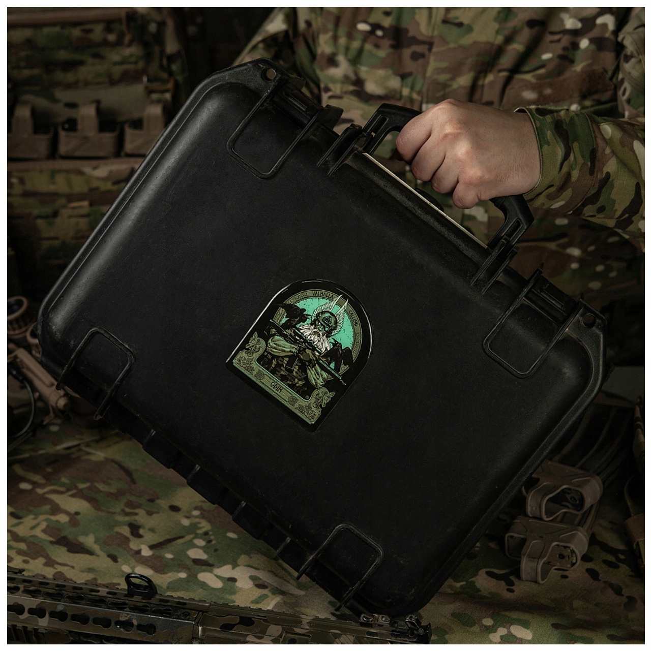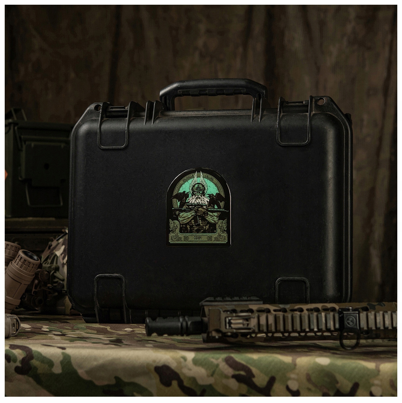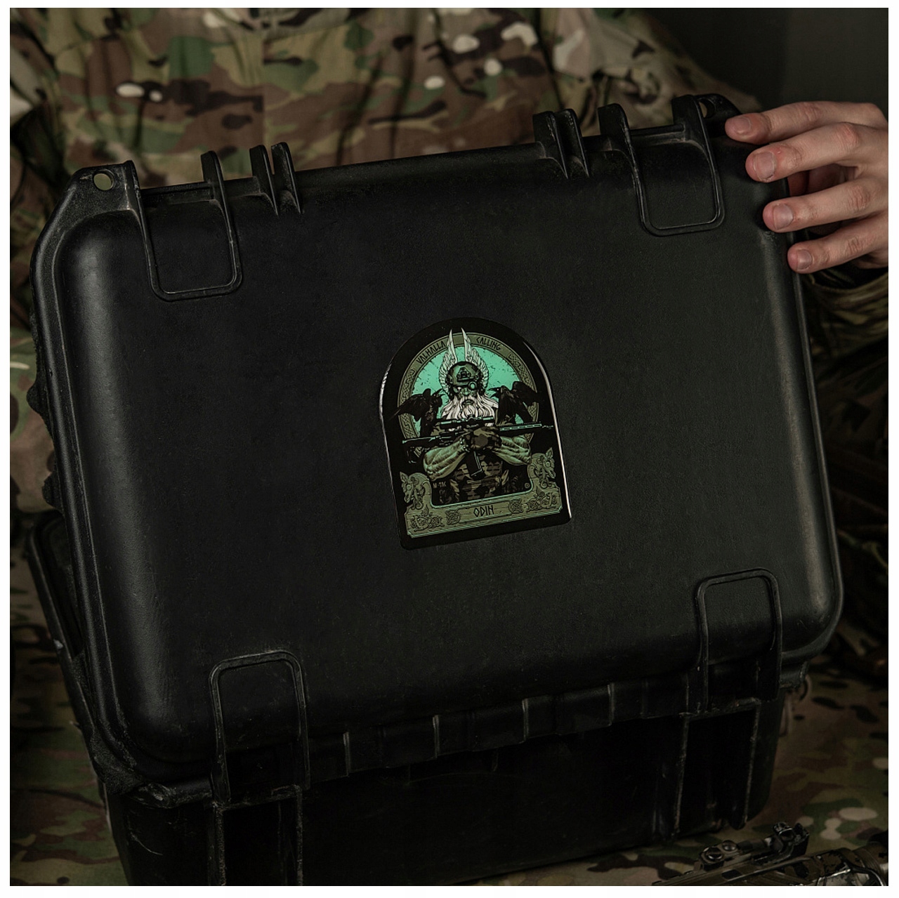 Naklejka ODIN od marki M-TAC przedstawia Odyna, najwyższego boga mitologii skandynawskiej, w nowoczesnym bojowym wydaniu, z AR-15 zamiast włóczni. Ubrany w zaawansowany sprzęt, z hełmem i noktowizorem, Odyn wraz z krukami Huginem i Muninem, symbolizującymi myśl i pamięć, jest gotów do ostatecznej bitwy. Napis „Valhalla Calling” oddaje ducha walki i nawiązuje do wikingowskiego okrzyku bojowego.