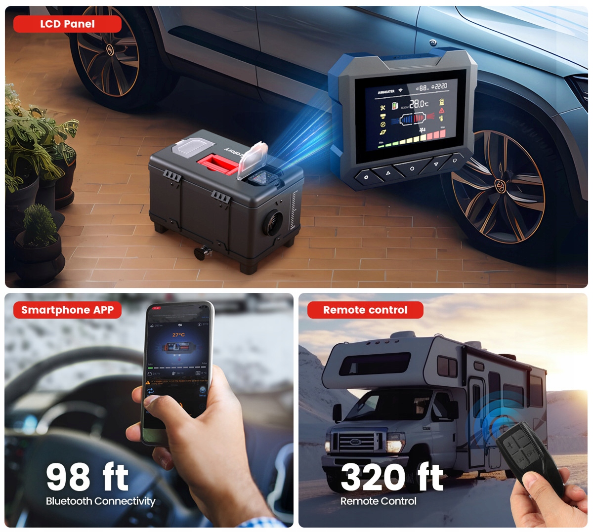 1. Ogrzewanie samochodu/przestrzeni wewnętrznej: Ogrzewanie przestrzeni przez wydobywanie ciepłego powietrza z komory spalania grzejnika;