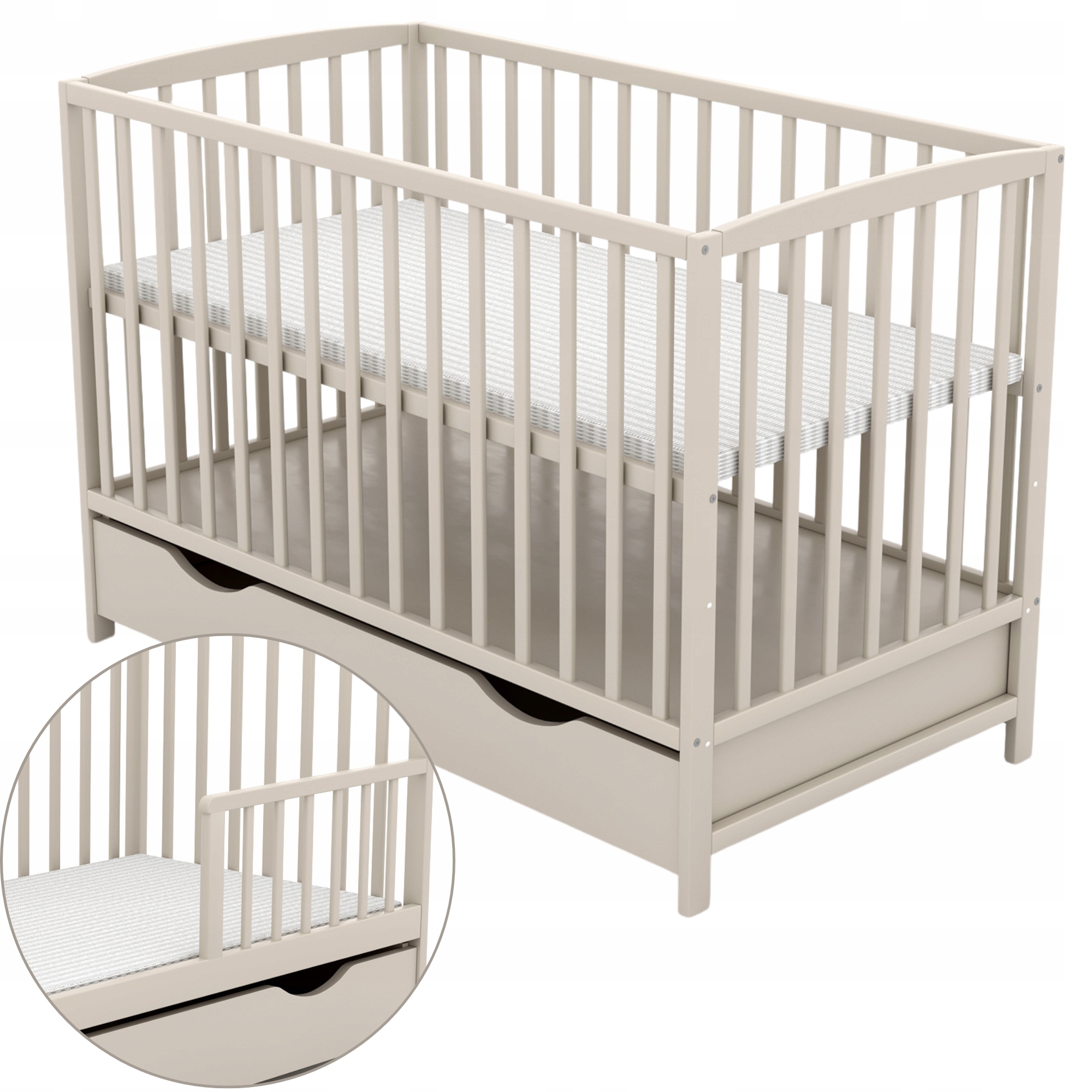 ✅ ŁÓŻECZKO DREWNIANE Z SZUFLADĄ KRZYŚ W KOLORZE KASZMIR/TAUPE 120X60