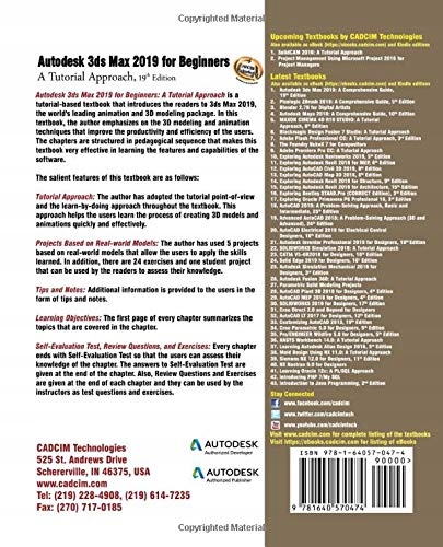 Autodesk 3ds Max 2019 for Beginners: A Tutorial Approach is a tutorial-based textbook that introduces the readers to the basic features of 3ds Max 2019 created on real world model through tutorials. The textbook caters to the needs of both the novice and the advanced users of the software.