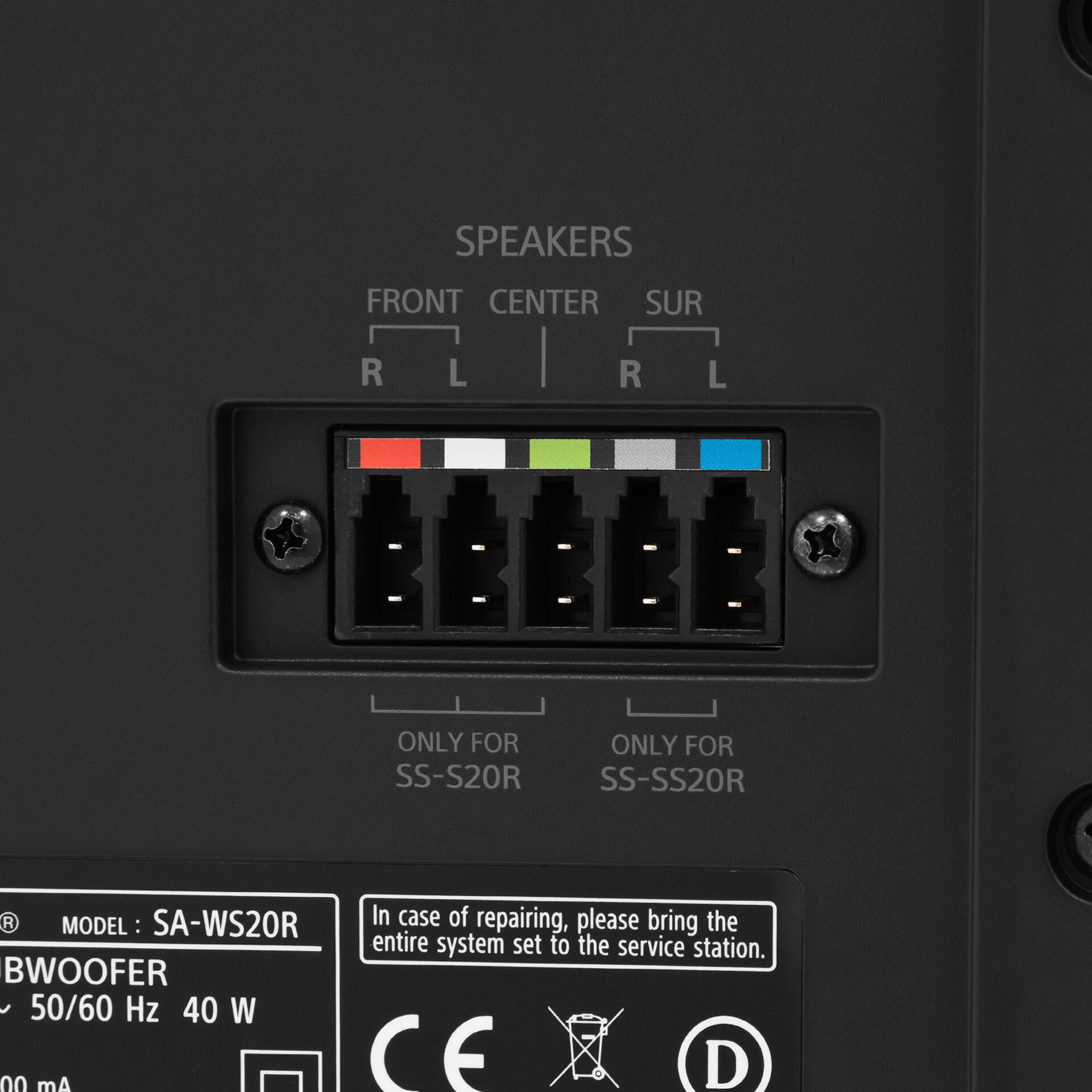 Soundbar HT-S20R jest gotowy do użycia niemal od razu po rozpakowaniu. Wystarczy włączyć go do sieci energetycznej, połączyć główny głośnik i tylne głośniki przewodami w odpowiednich kolorach, ustawić przewodowy subwoofer i tylne głośniki — a potem zanurzyć się w realistyczny, 5.1-kanałowy dźwięk przestrzenny.