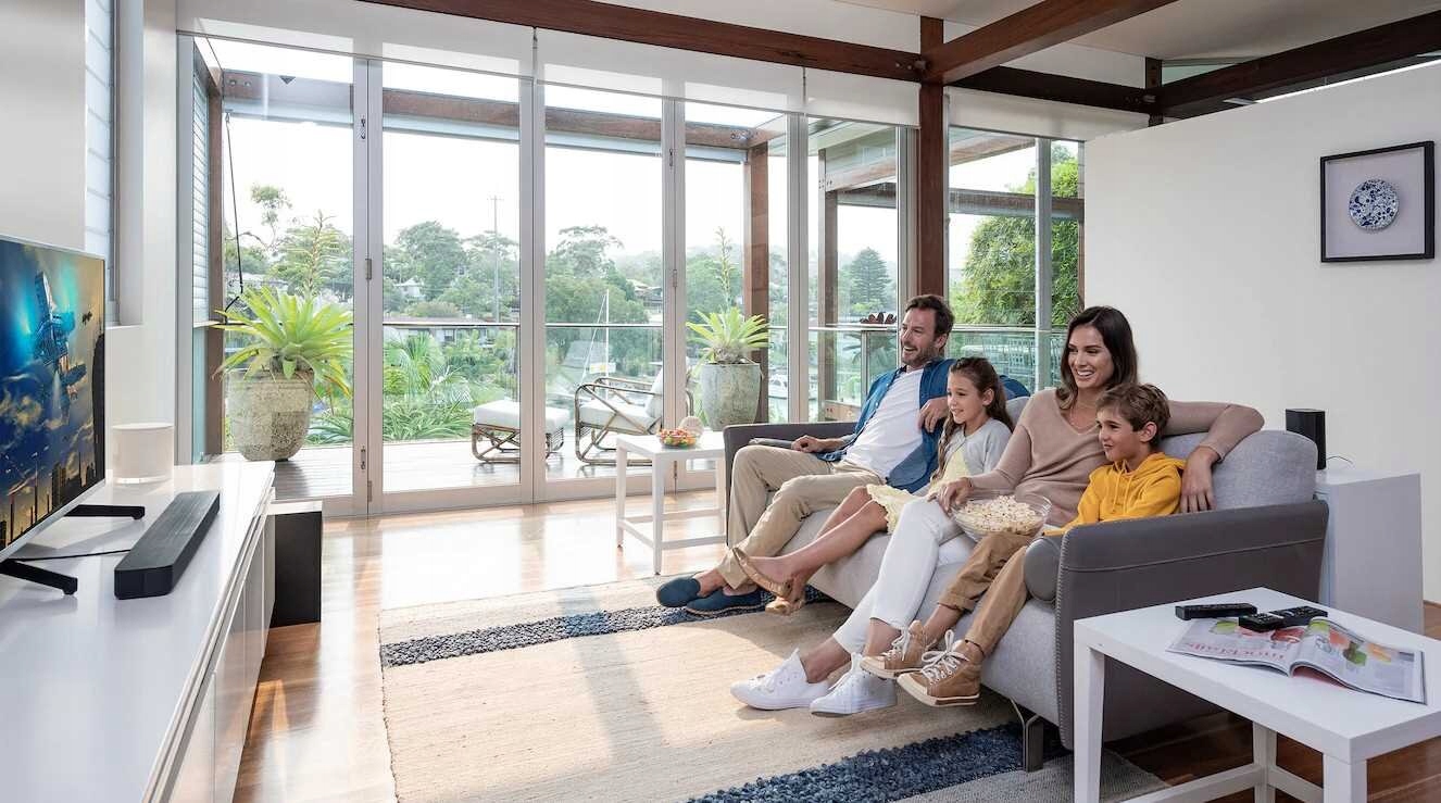 Prawdziwy 5.1-kanałowy dźwięk przestrzenny nadaje filmom odpowiednią oprawę muzyczną — dynamiczny, kinowy dźwięk z tylnych głośników, zewnętrznego subwoofera i 3-kanałowego soundbara.