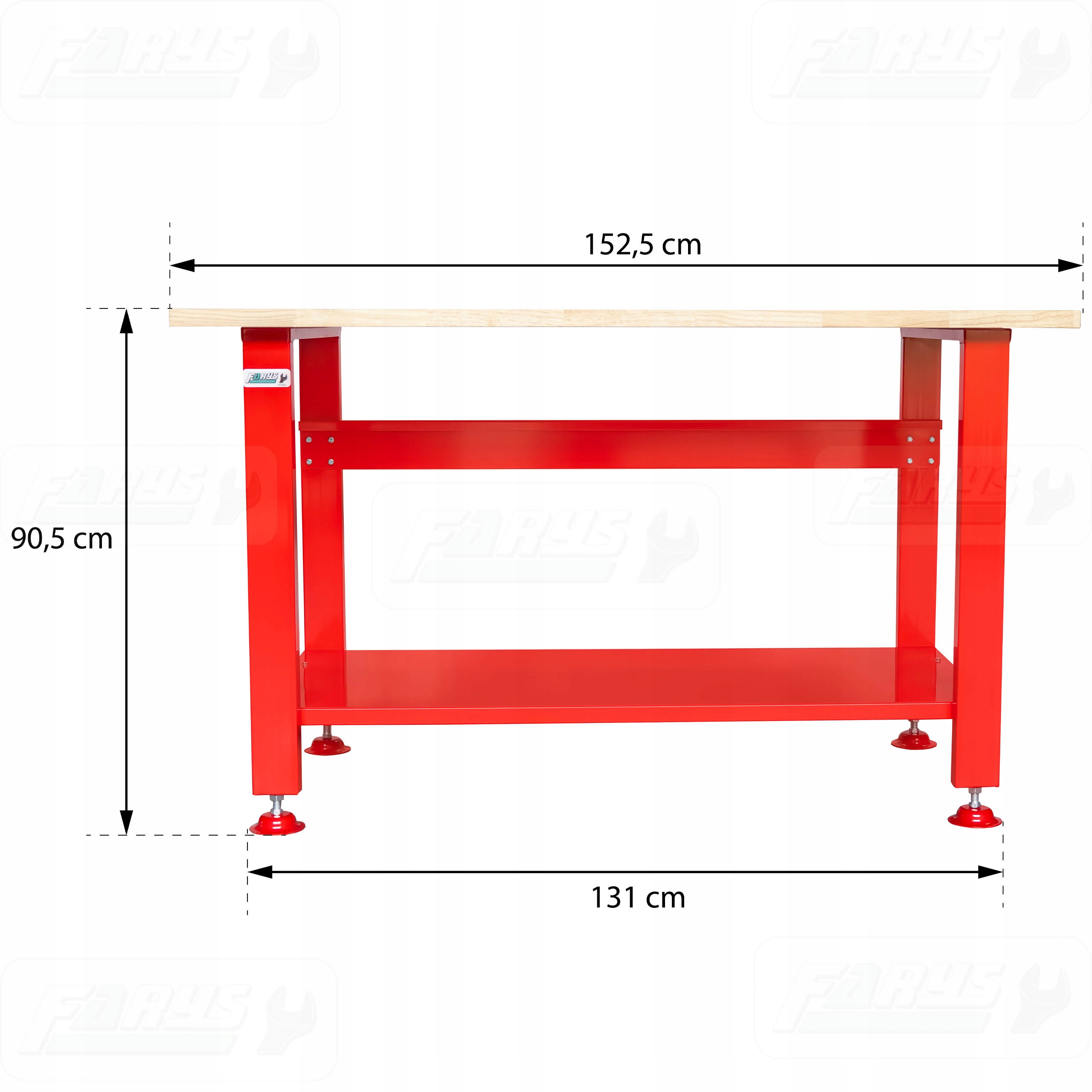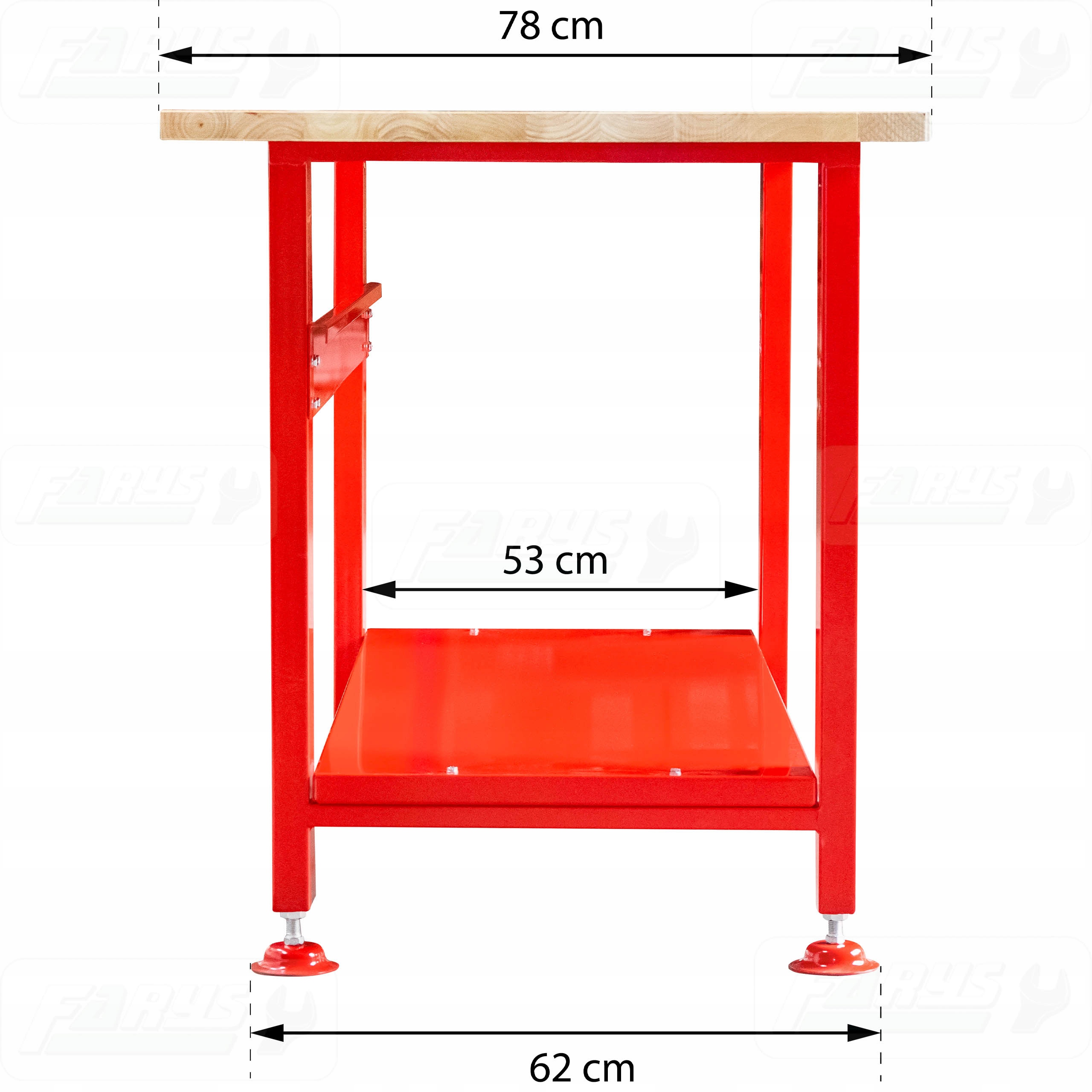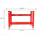 Kluczową zaletą tego stołu jest drewniany blat, który pozwala na trwałe przymocowanie różnych sprzętów warsztatowych jak na przykład imadła.