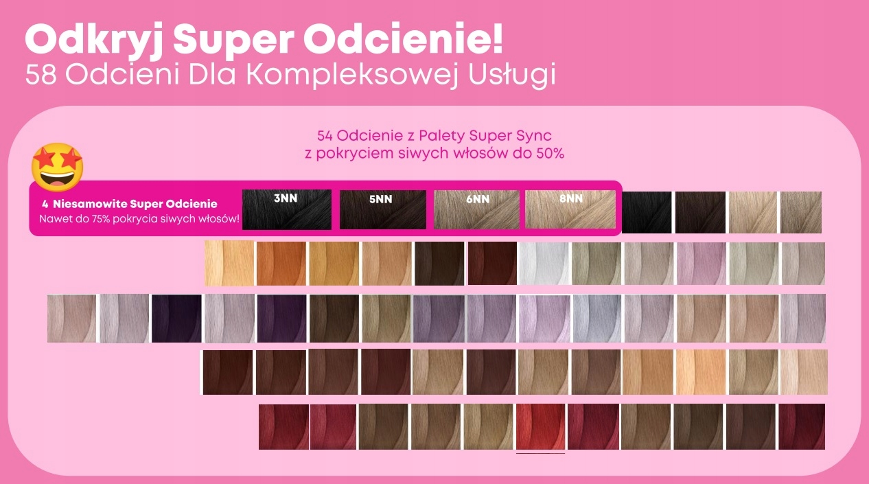 Тонеры Super Sync обеспечивают покрытие седых волос до 50%, а цвета NN до 75%.