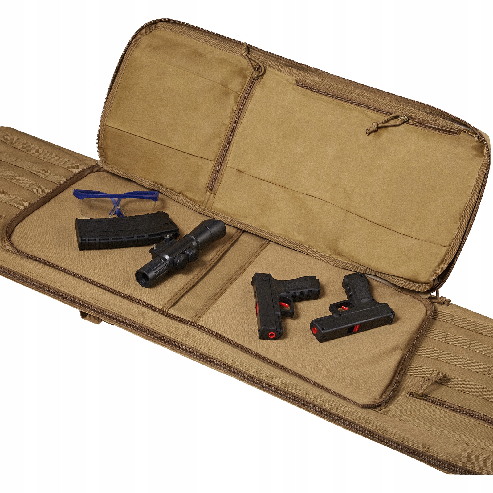 Podwójna torba na karabin została zaprojektowana do wygodnego transportu broni palnej, sprzętu myśliwskiego lub treningowego podczas podróży i służy wielu celom, takim jak wędkarstwo, strzelanie, wędrówki i kemping.