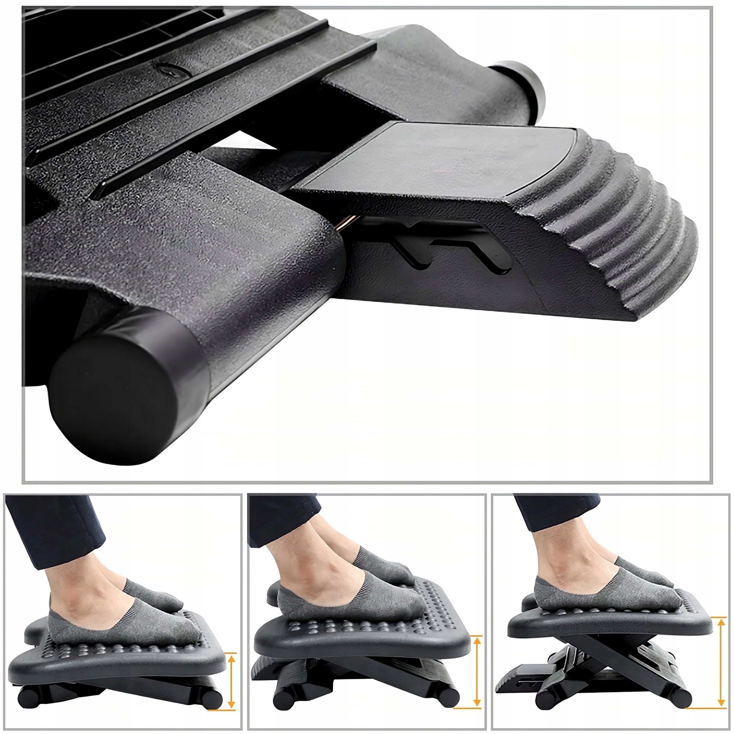 ✔️ Trzystopniowa regulacja wysokości – ergonomiczny podnóżek oferuje trzy opcje wysokości: 11 cm, 14 cm i 17 cm, co pozwala dopasować go do Twoich indywidualnych potrzeb.