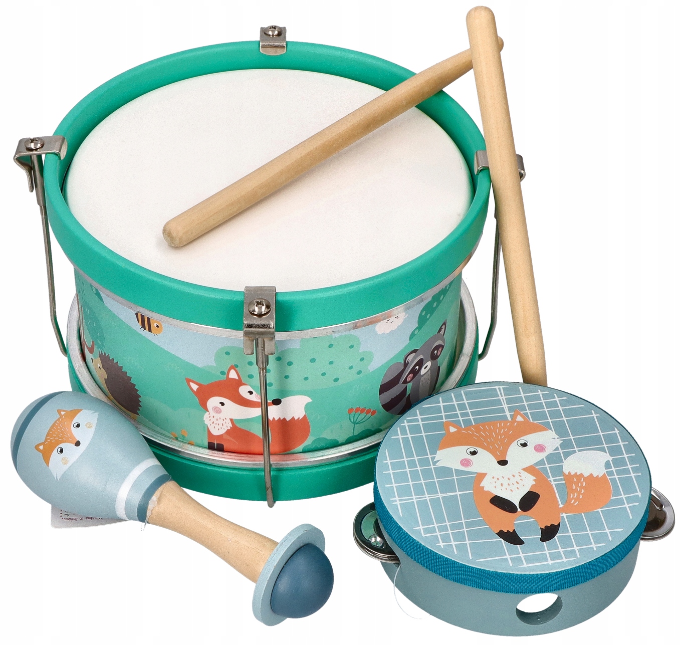 Bębenek zdobią znane Wam już leśne zwierzęta. Tamburyn oraz marakas z wizerunkiem lisicy Kitki z pewnością przypadną do gustu młodym muzykantom.