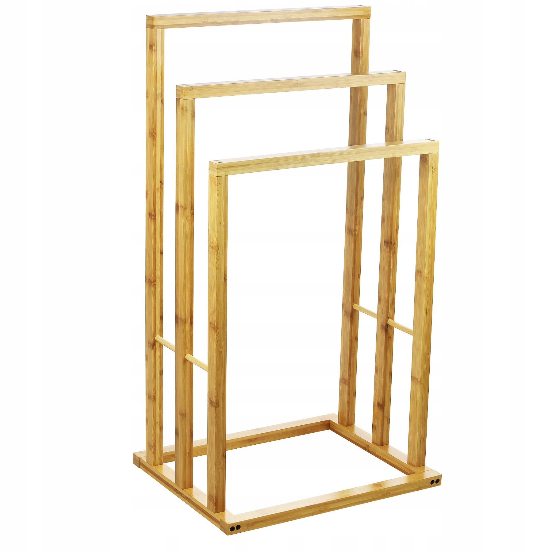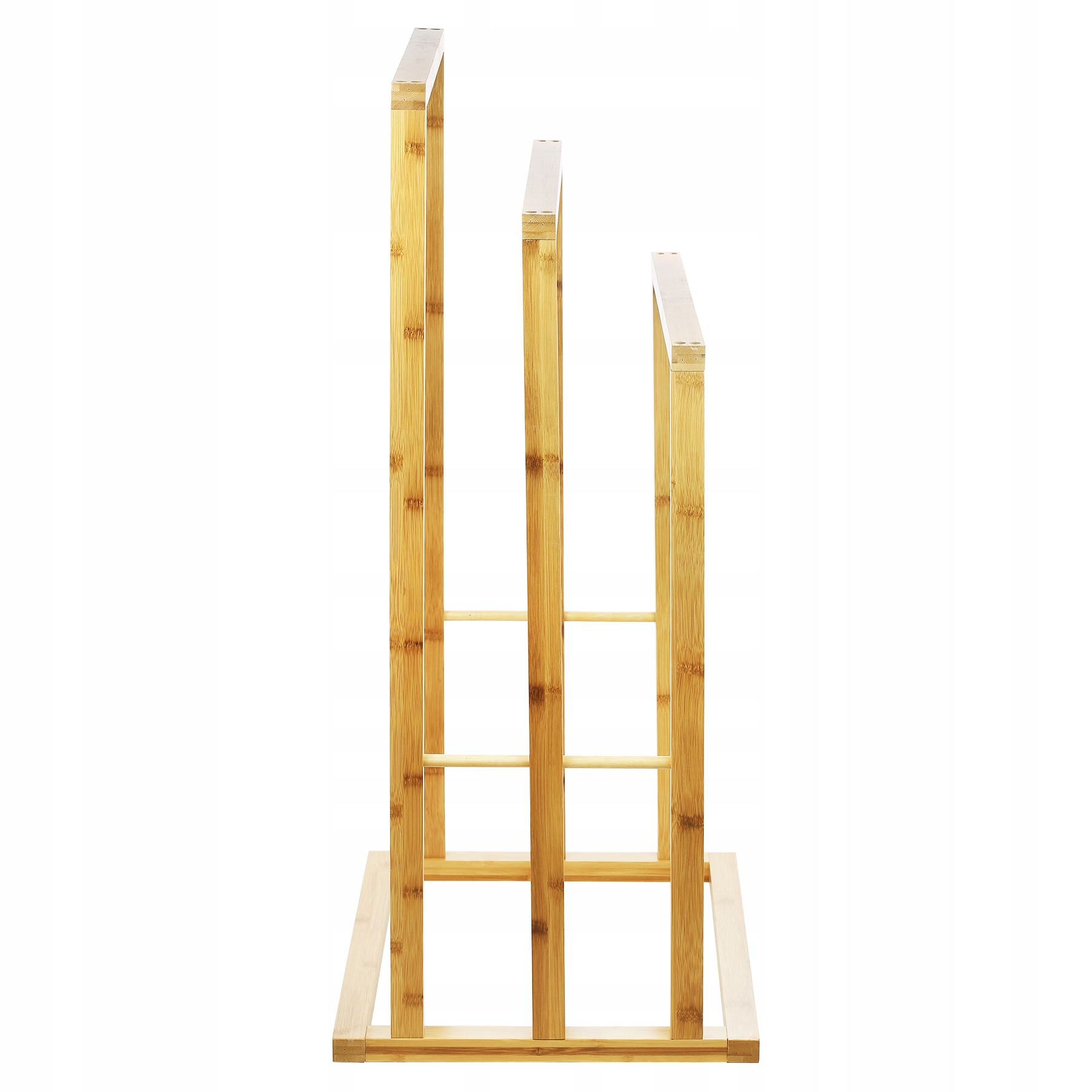 Stojak wykonany z trwałego, odpornego na wilgoć bambusa, idealnie sprawdza się w wilgotnych pomieszczeniach, takich jak łazienka. Trzy drążki mogą utrzymać nawet duże ręczniki kąpielowe.