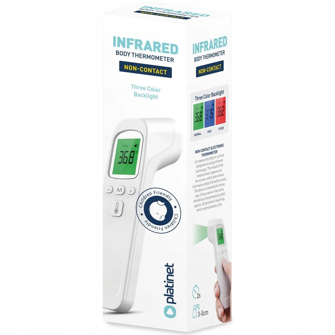 Электронный бесконтактный инфракрасный термометр предназначен для всей семьи. Продукт он предназначен, в частности, для измерения температуры тела у маленьких детей-это необычно быстрый и неинвазивный. Измерение температуры производится менее чем через 2 секунды после приближения устройства ко лбу. Ребенок даже не успеет обратить на это внимание, что, безусловно, облегчает проверку температура. Оснащен легко читаемым ЖК-дисплеем, изменяющим цвет в зависимости от уровня температура. Вы можете легко измерить температуру вашего ребенка во время сна-без ненужного стресса и плача. Чрезвычайно простой в использовании и интуитивно понятный-это недорогая и удобная альтернатива стандартные термометры!