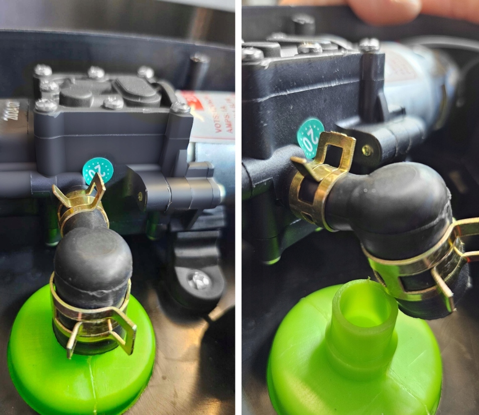 ✅zoptymalizowaliśmy sposób montażu pompki – teraz jest ona bezpośrednio połączona ze zbiornikiem, tuż przy jego wylocie. Zrezygnowaliśmy z długiego wężyka, który wcześniej łączył zbiornik z pompą.