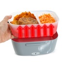 Lunch box został zaprojektowany tak, aby podgrzewać jedzenie i utrzymywać temperaturę na poziomie około 60°C. Dzięki temu nie ma ryzyka przypalenia potraw, a ich smak pozostaje niezmieniony. Mocniejsza grzałka wymagałaby ciągłego nadzoru, aby uniknąć przypalenia potrawy lub zagotowania zupy.