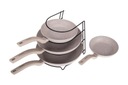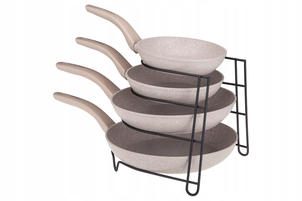 Zaprojektowany z myślą o maksymalnej organizacji, stojak pomieści do 4 patelni, zapewniając im stabilne i bezpieczne miejsce przechowywania.