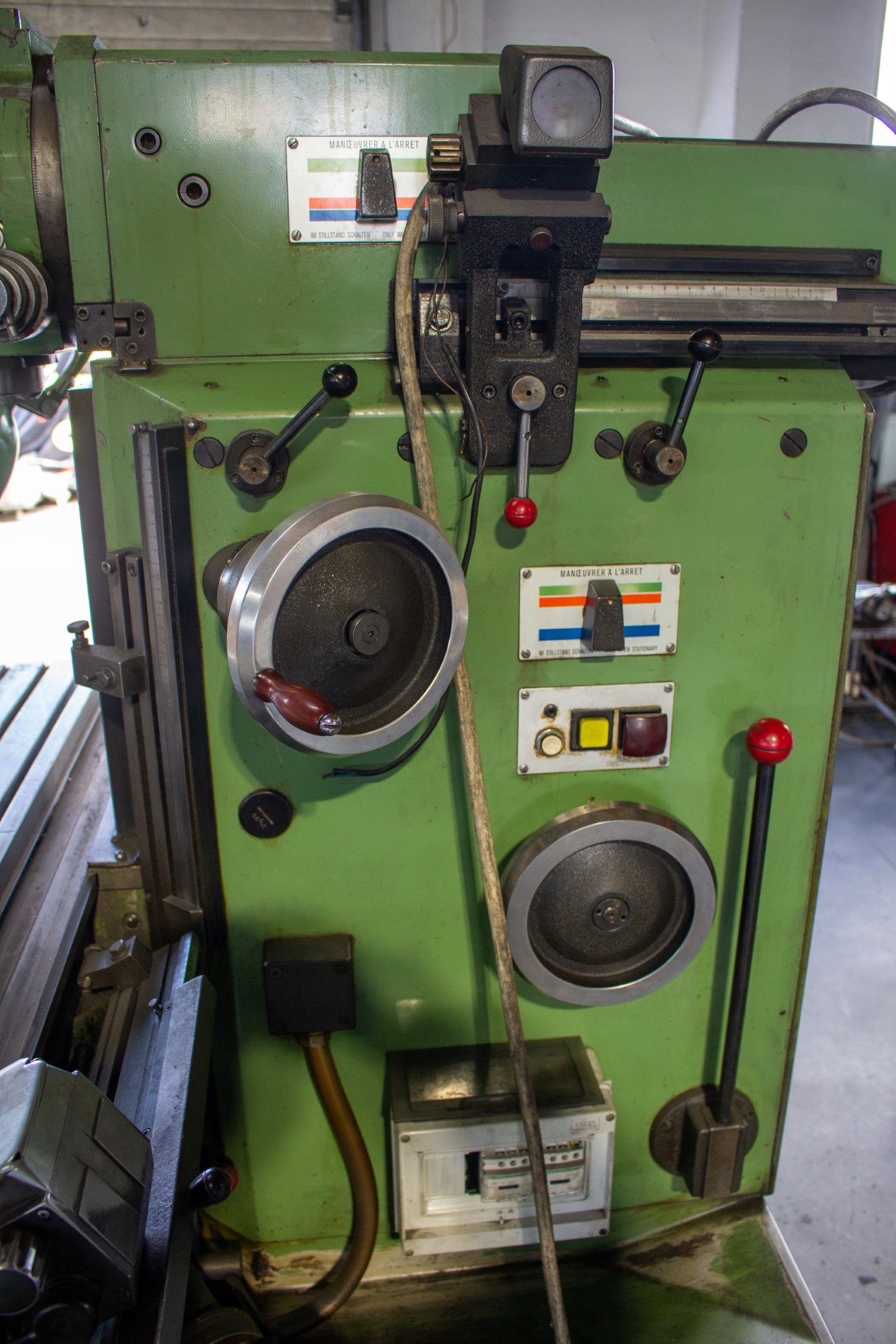 Frezarka po zdjęciu głowicy frezerskiej posiada możliwość zamontowania freza w płaszczyźnie poziomej.