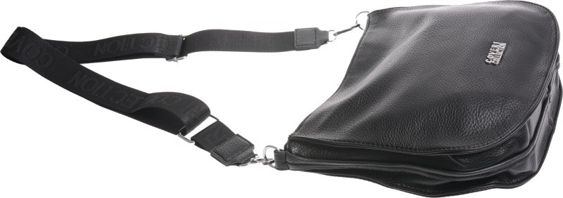 -Pasek torebki jest długi, parciany i regulowany ( można ją dopasować do wzrostu ).