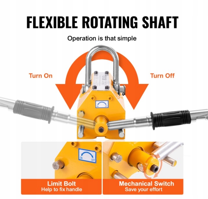 Nasz magnes do podnoszenia jest wyposażony w uchwyt antykolizyjny wyposażony w wyłącznik bezpieczeństwa, a śruba końcowa może mocno zamocować uchwyt podczas podnoszenia.