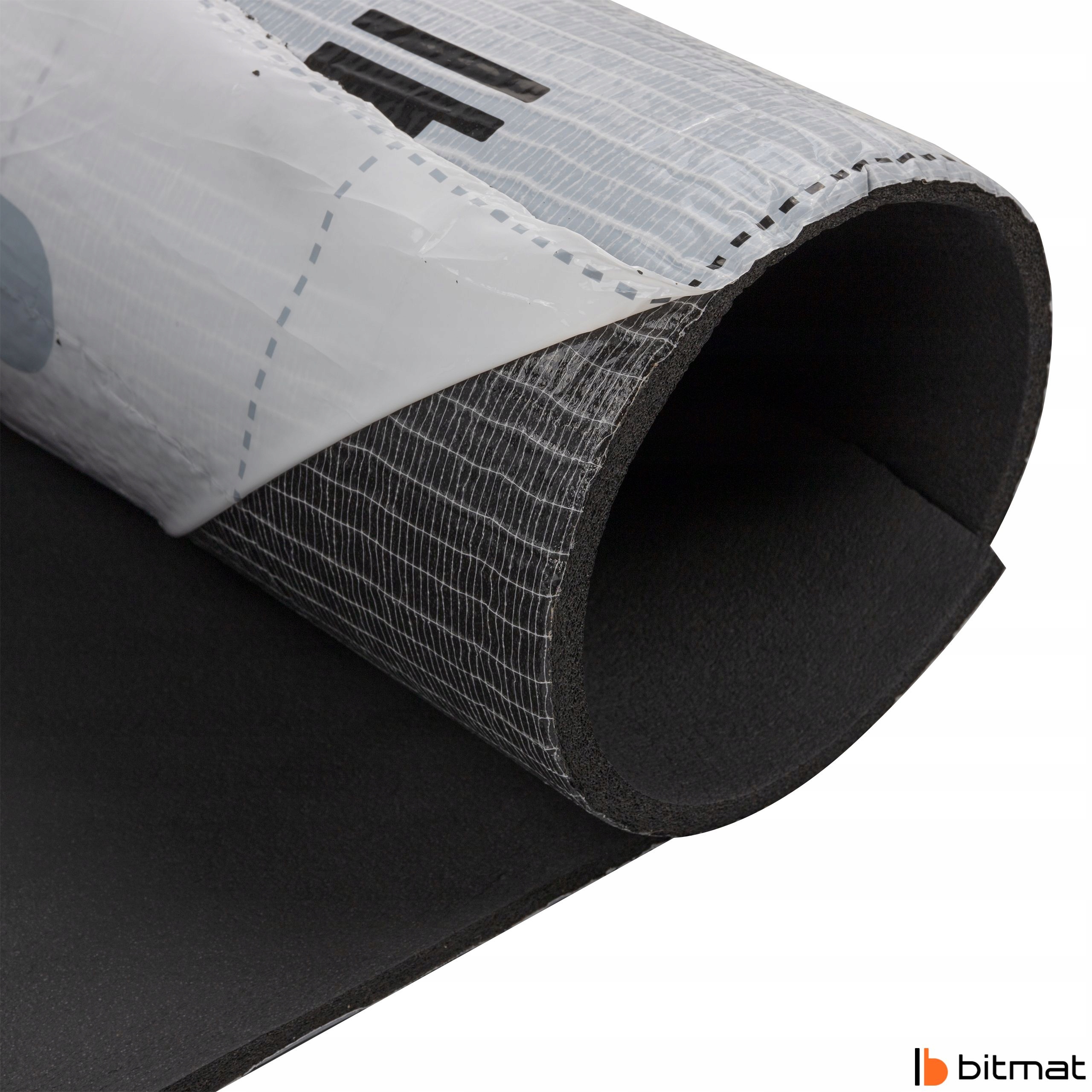 Mata wygłuszająca K9s Bitmat — pianka izolacyjna gumowa o strukturze komórek zamkniętych z warstwą mocnego kleju, posiada wysokie właściwości akustyczne oraz izolacyjne.
