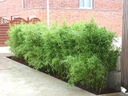 Bambus ten rośnie kolumnowo, dlatego polecany jest także do mniejszych ogródków. Tworzy drobne, matowo zielone, delikatne liście.