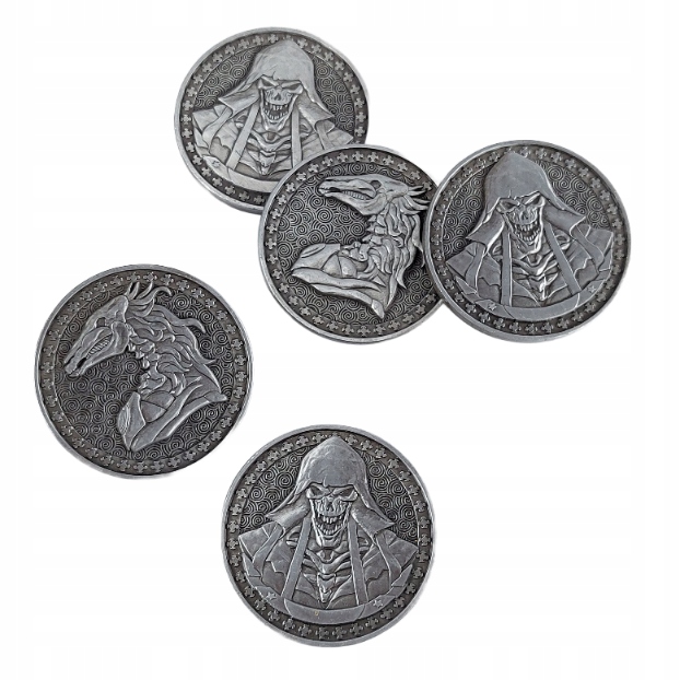 Mają praktycznie nieograniczoną ilość zastosowań - sprawdzają się jako realistyczne żetony w takich grach planszowych, są też klimatycznym dodatkiem do sesji RPG oraz nieodzownym elementem LARPów! W zestawie znajduje się: