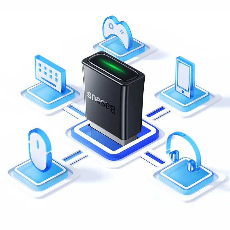 Bezprzewodowy adapter Baseus zapewnia szybszą transmisję danych oraz stabilne połączenie na odległość do 20 m dzięki chipowi 5.3. Obsługuje funkcję Plug and Play i jest szeroko kompatybilny z urządzeniami wyposażonymi w port USB-A. Umożliwia połączenie aż 5 urządzeń w tym samym czasie i oferuje dźwięk Hi-Fi o wysokiej rozdzielczości.