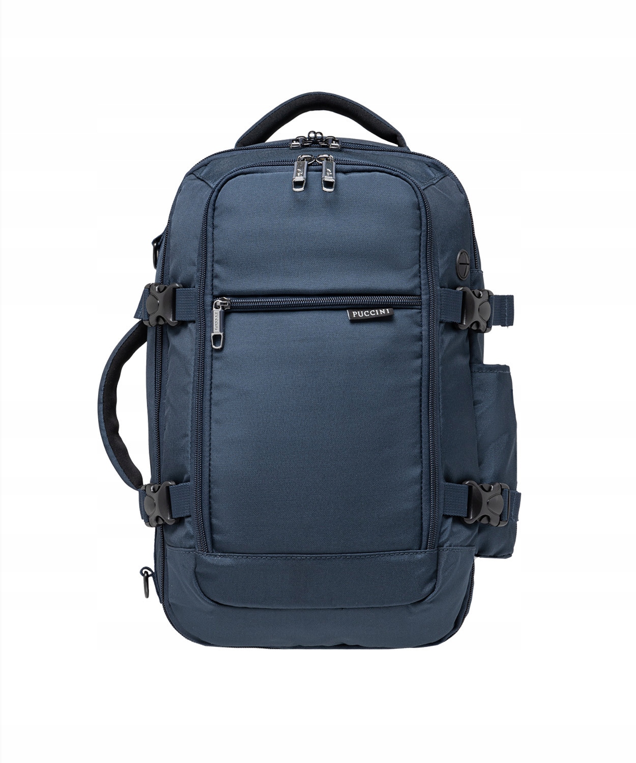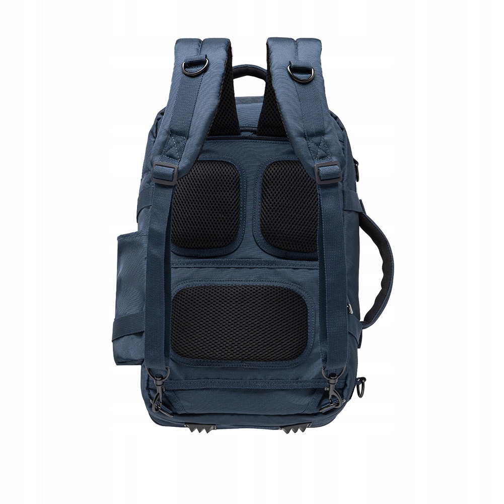 Wykonany z wysokiej jakości poliestru z dodatkiem poliuretanu, plecak oferuje możliwość noszenia zarówno na plecach, jak i na odpinanym, regulowanym pasku na ramię. Posiada dwie oddzielne komory mieszczące format A4, a także przegrodę na laptopa do 14 cali. Wewnątrz znajduje się kieszeń z blokadą RFID oraz wodoodporna kieszeń na przybory toaletowe. Pasy spinające zabezpieczają zawartość przed przemieszczaniem się. Na froncie umieszczono dwie kieszenie zamykane na suwak, a po bokach regulowaną kieszeń. Regulowane szelki można schować do specjalnej kieszeni, a wzmocnione uchwyty na górze i boku oraz ergonomicznie wyprofilowany system pleców zapewniają wygodę użytkowania.