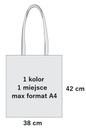 Aukcja dotyczy 50 szt. toreb bawełnianych w kolorze czarnym z nadrukiem w jednym wybranym kolorze do formatu A4.