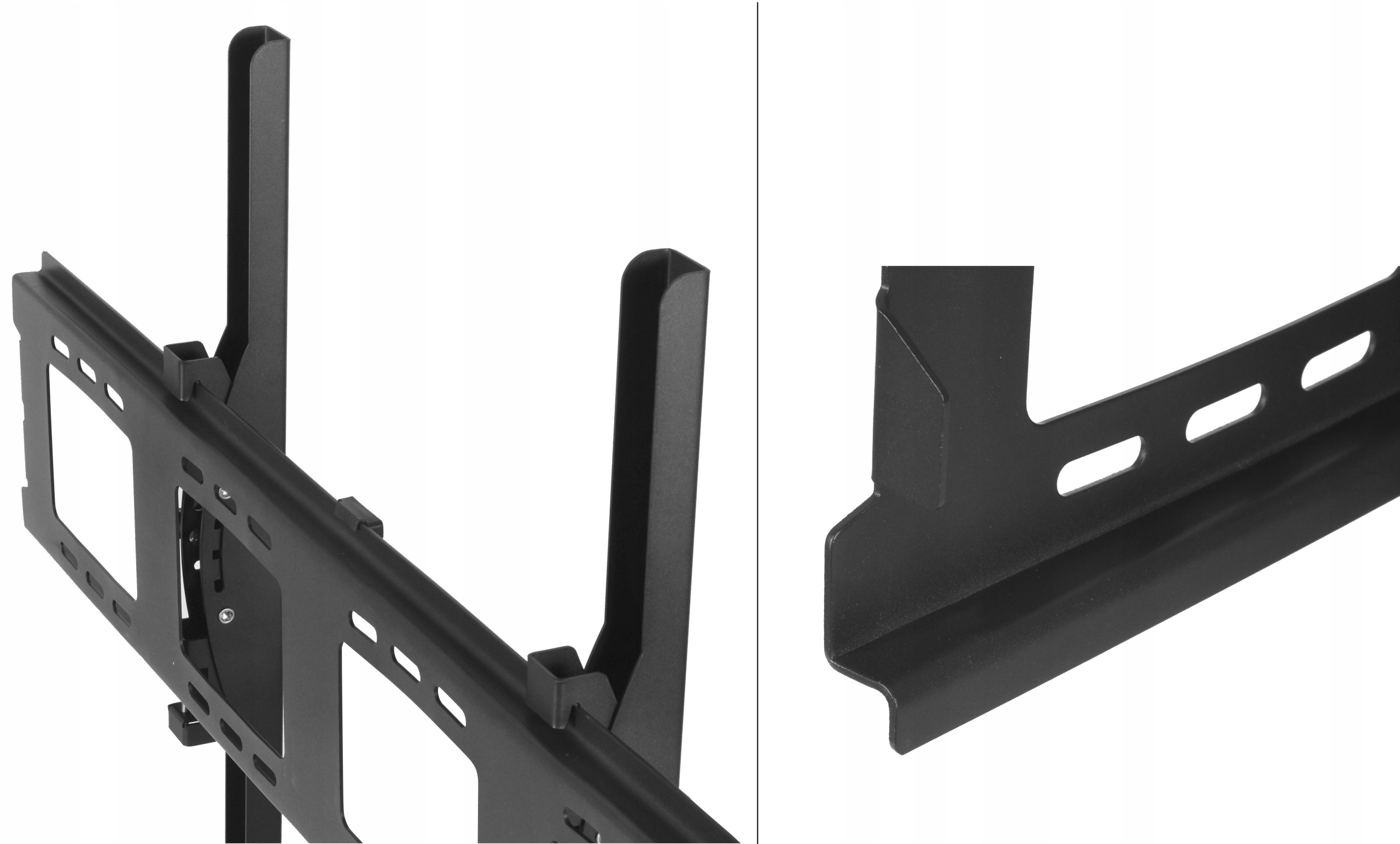 ✔️ Bezpieczeństwo: Uchwyt wykonany jest ze wzmocnionej stali oraz wyposażony został w blokadę, która zapobiega przypadkowemu strąceniu telewizora.