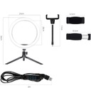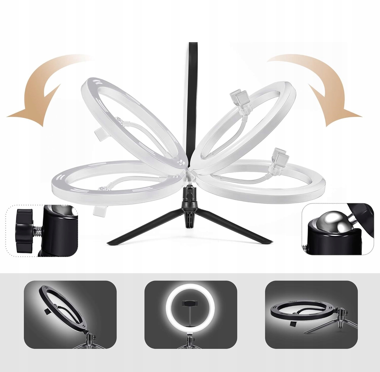 Regulowana lampa pierścieniowa i uchwyt na telefon: Obrotowa lampa pierścieniowa LED o 360 °, możesz swobodnie regulować kąt według potrzeb, zacisk jest również regulowany i nadaje się do większości telefonów komórkowych, szerokość ekranu od 6,5 do 8,5 cm.