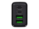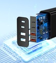 Ładowarka ma wbudowane cztery gniazda, dwa USB oraz dwa USB typ C co pozwala na podłączenie i ładowanie czterech urządzeń jednocześnie wykorzystując tylko jedno gniazdo sieciowe.