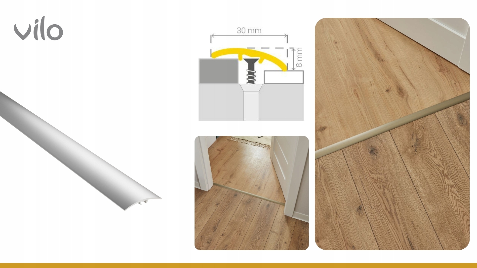 ✅ Wysokiej jakości anodowanie gwarantuje odporność na promieniowanie UV, co zapobiega blaknięciu koloru i zapewnia długotrwałą estetykę. Listwa progowa Vilo jest łatwa w montażu i nie wymaga specjalistycznych narzędzi, co sprawia, że idealnie nadaje się do samodzielnych prac wykończeniowych.