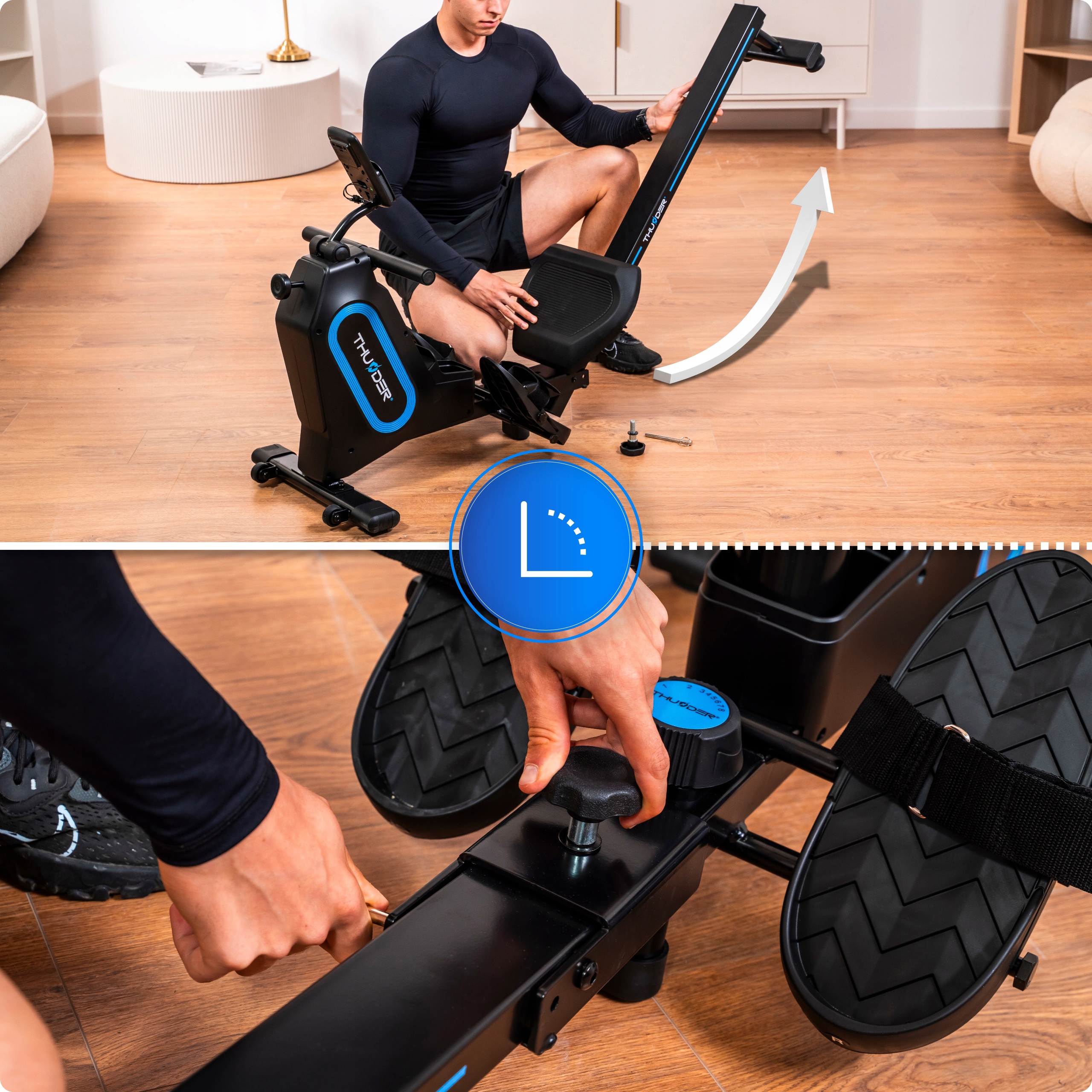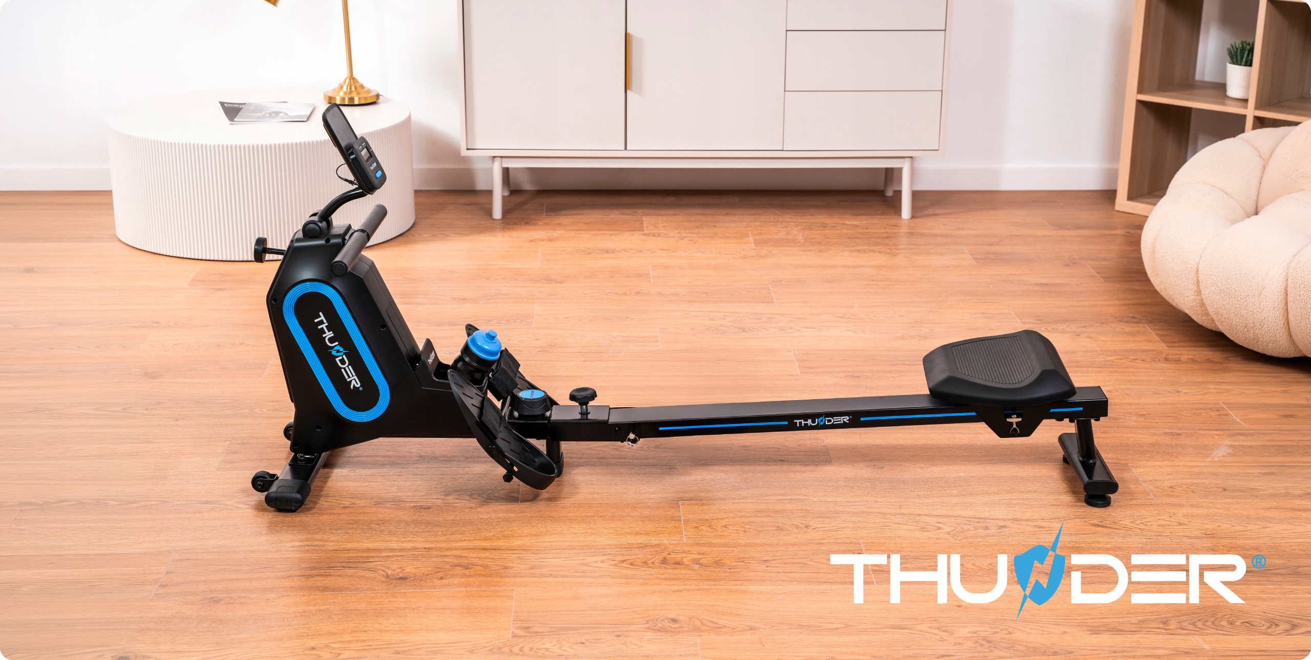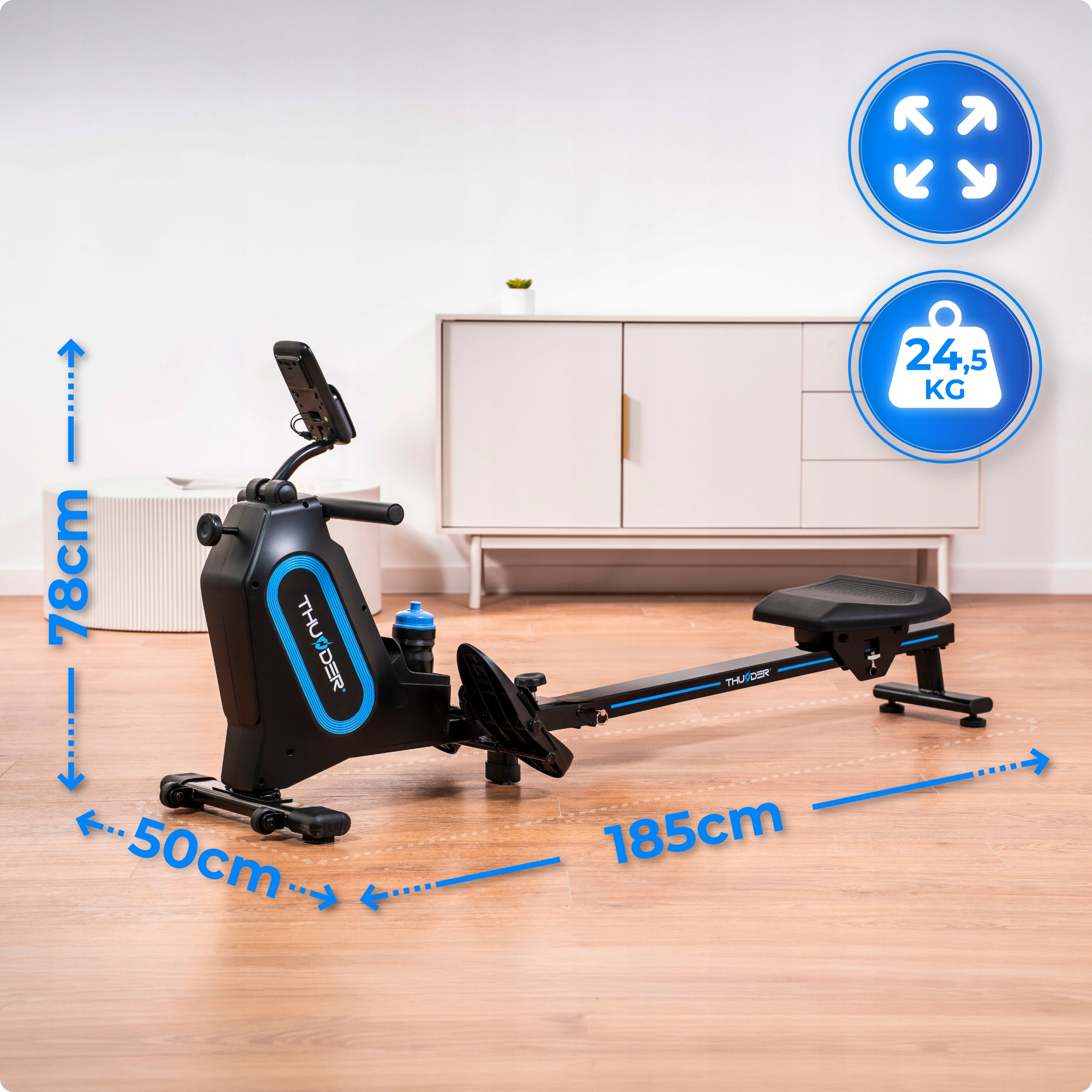 Wioślarz możesz złożyć na dwa sposoby – pionowo lub poprzez złożenie szyny.