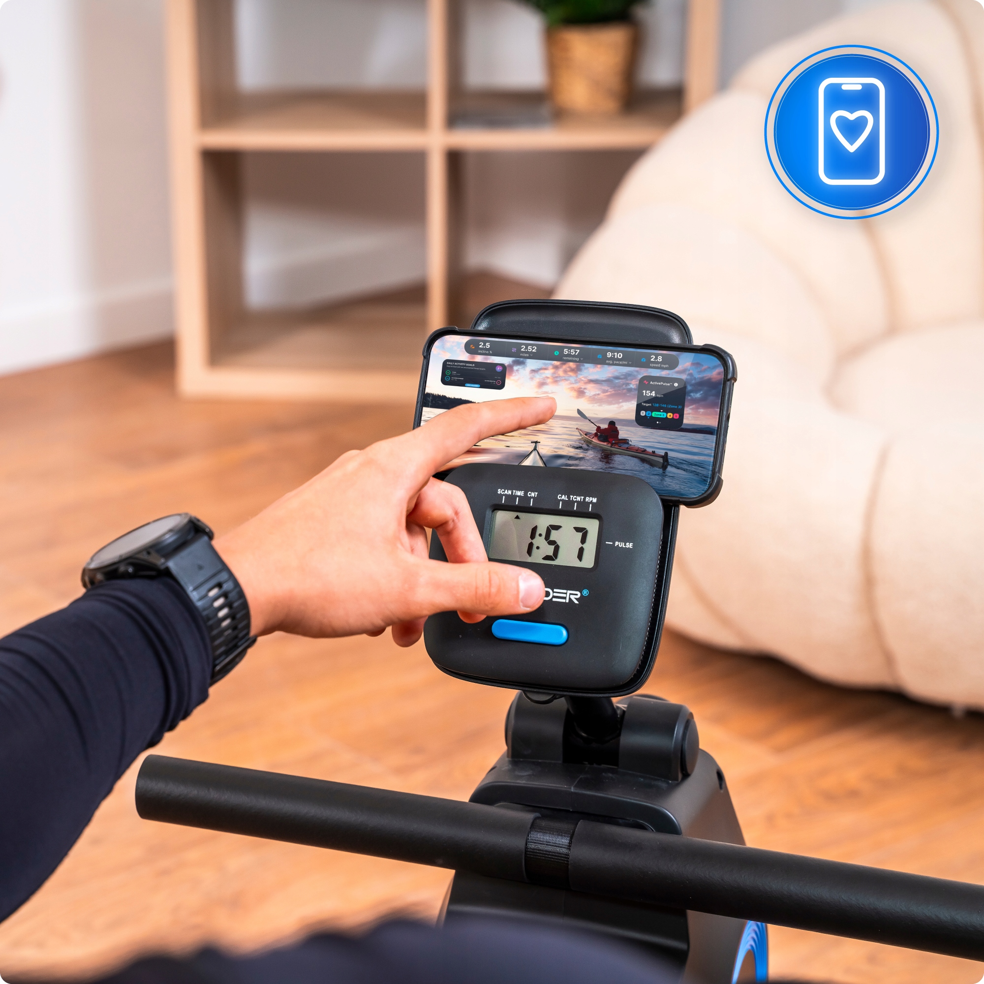 Praktyczny uchwyt na smartfon pozwala mieć ekran zawsze w zasięgu wzroku, dzięki czemu każda sesja staje się przyjemnością, a czas mija błyskawicznie.