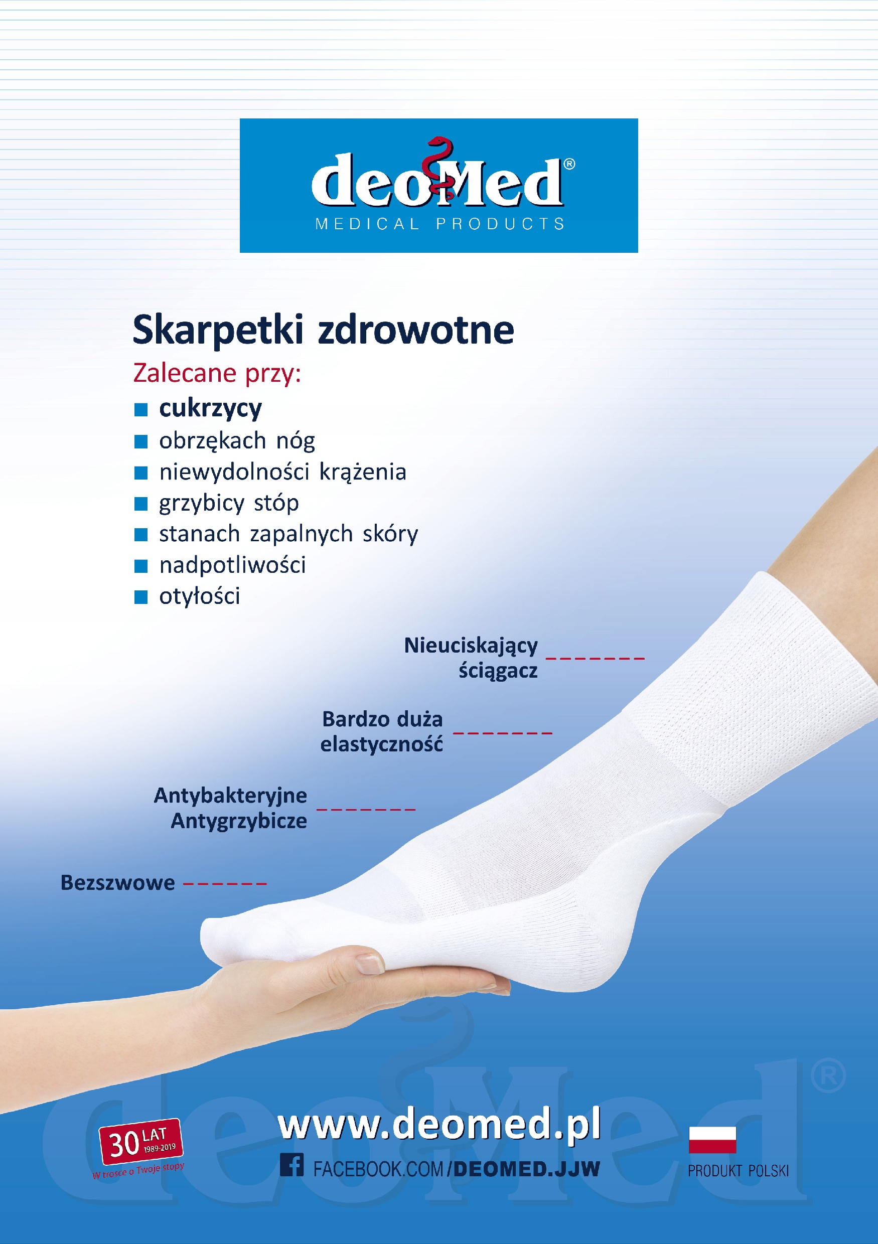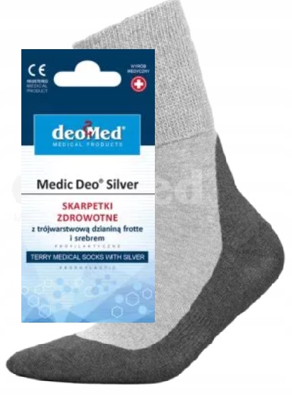 Skarpety DeoMed Medic Deo Silver to kolekcja unikalnych skarpetek zdrowotnych, przeznaczonych dla osób z: cukrzycą, stanami zapalnymi skóry, grzybicą, obrzękami nóg oraz zaburzeniami krążenia.