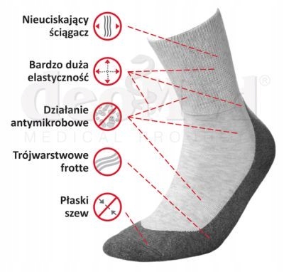 SKARPETKI ZDROWOTNE ZE SREBREM, BEZUCISKOWE Z TRÓJWARSTWOWĄ DZIANINĄ FROTTE, ANTYZAPACHOWE